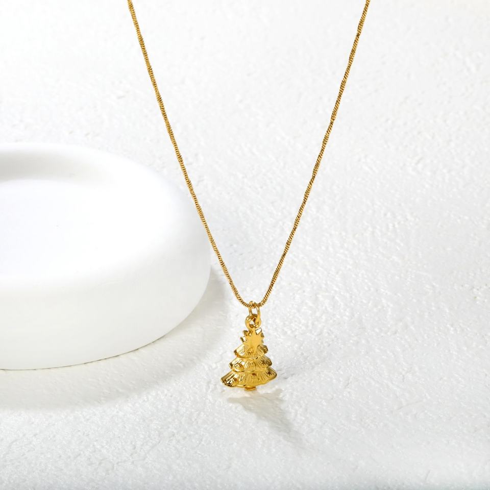 สร้อยคอแฟชั่นสแตนเลสสตีลชุบทอง 18K ลายต้นคริสต์มาส สำหรับผู้หญิง เป็นของขวัญในเทศกาลคริสต์มาส