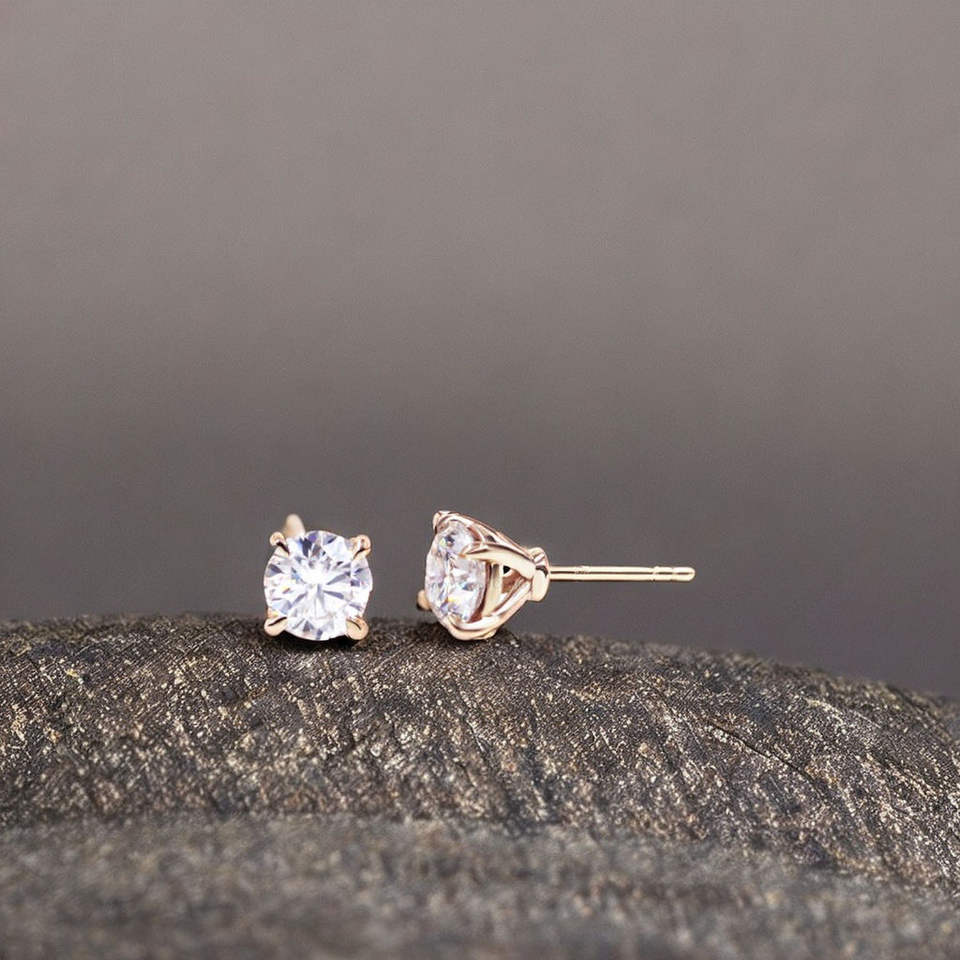ต่างหูเงินแท้ทรงทันสมัยประดับเพชรโมอิสซาไนต์สีโรสโกลด์ ดีไซน์หรูหรา ระยิบระยับ พร้อมใบรับรองคุณภาพ
