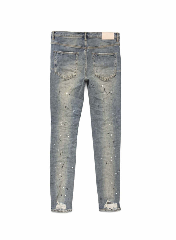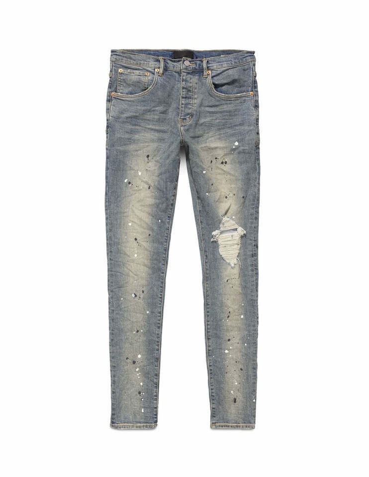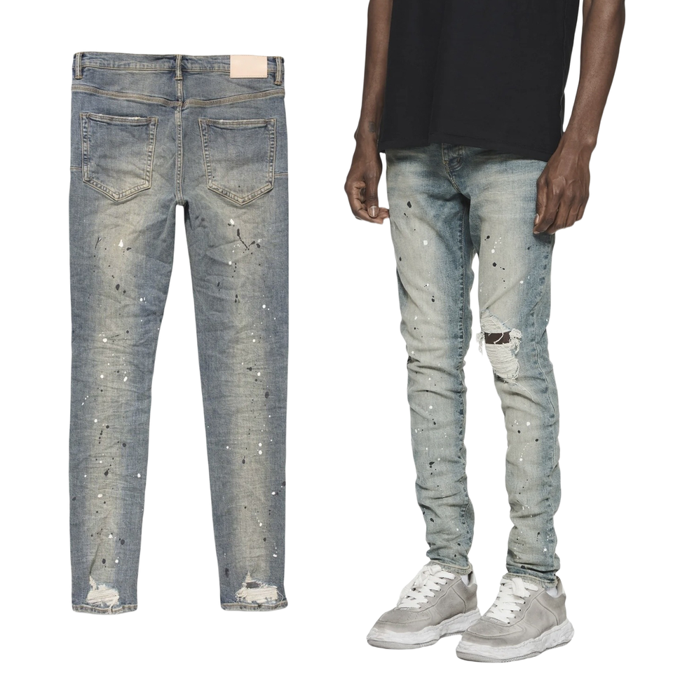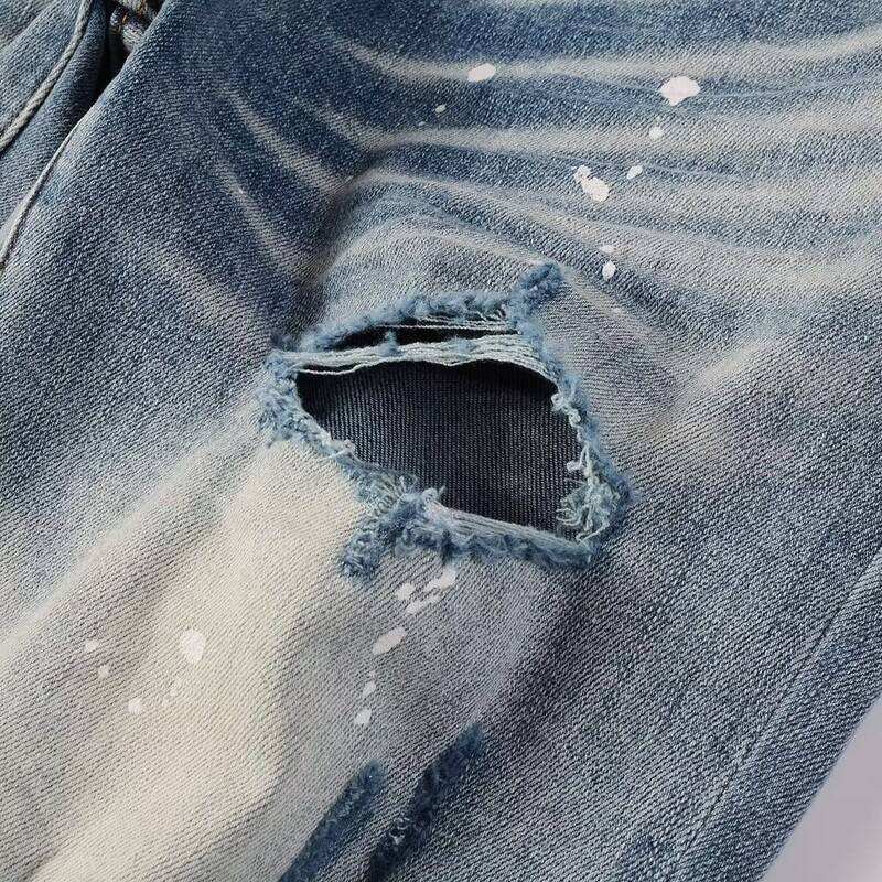 Trendy Streetwear Mens Jeans High-Waist Hip Hop Tight-Fit Solid Washed Painted & Ripped Stretch Denim with Spray Detail