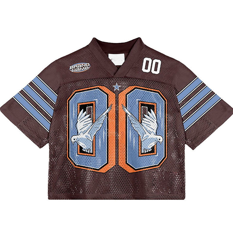 เสื้อครอปอเมริกันฟุตบอลสไตล์สตรีทเสื้อครอปสไตล์อเมริกันพิมพ์ลายตามสั่งดีไซน์ใหม่