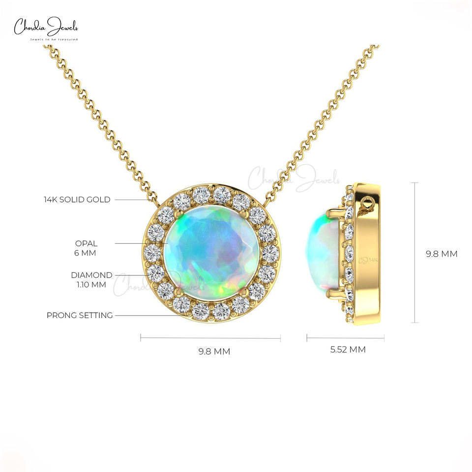 สร้อยคอโอปอลไฟแท้ tcw 0.75สไตล์อินเทรนด์สร้อยคอทองคำ14K ประดับเพชรฮาโลเครื่องประดับพลอยประจำวันเกิด