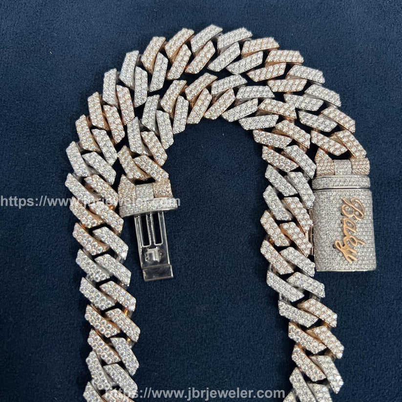 สร้อยคอเพชร VVS Moissanite 14มม. สไตล์อินเทรนด์925เงินแท้2โทนห่วงโซ่ลิงค์ไมอามี่คิวบา