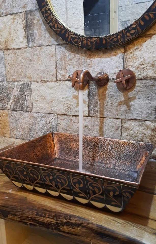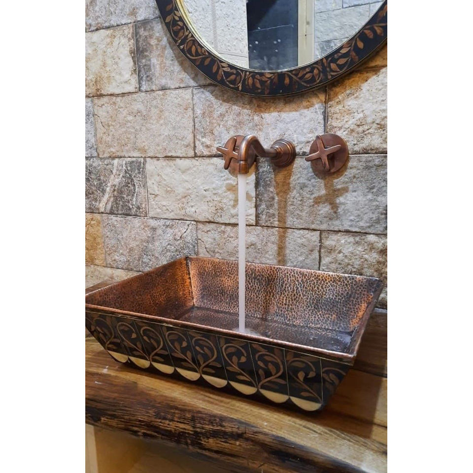 อ่างล้างหน้าห้องน้ำสไตล์ทันสมัย รูปทรงสี่เหลี่ยมผืนผ้า ผลิตจากทองแดงแท้ จำหน่ายจำนวนมาก
