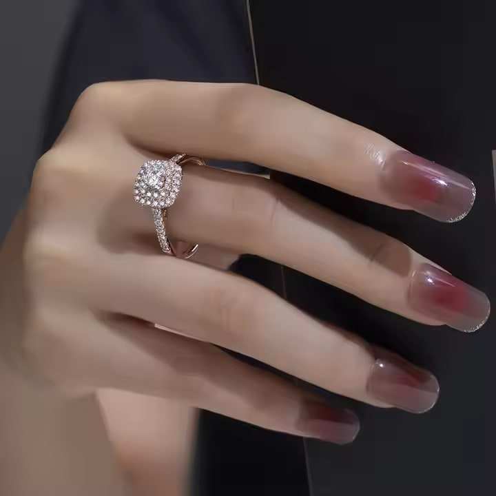 แหวนเพชรประดับสำหรับงานแต่งงานแบบรัศมีวงสีโรสโกลด์14K ดีไซน์สไตล์อินเทรนด์