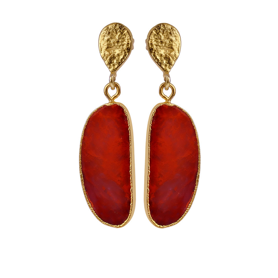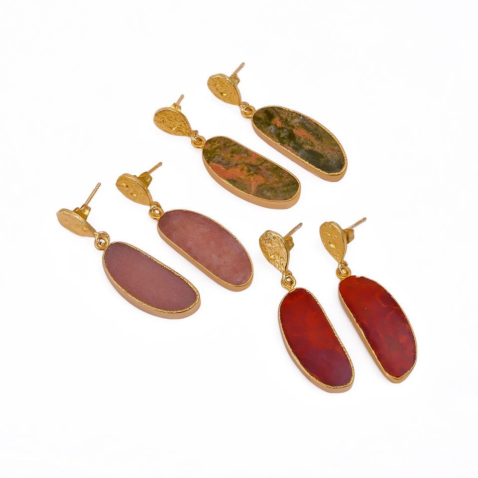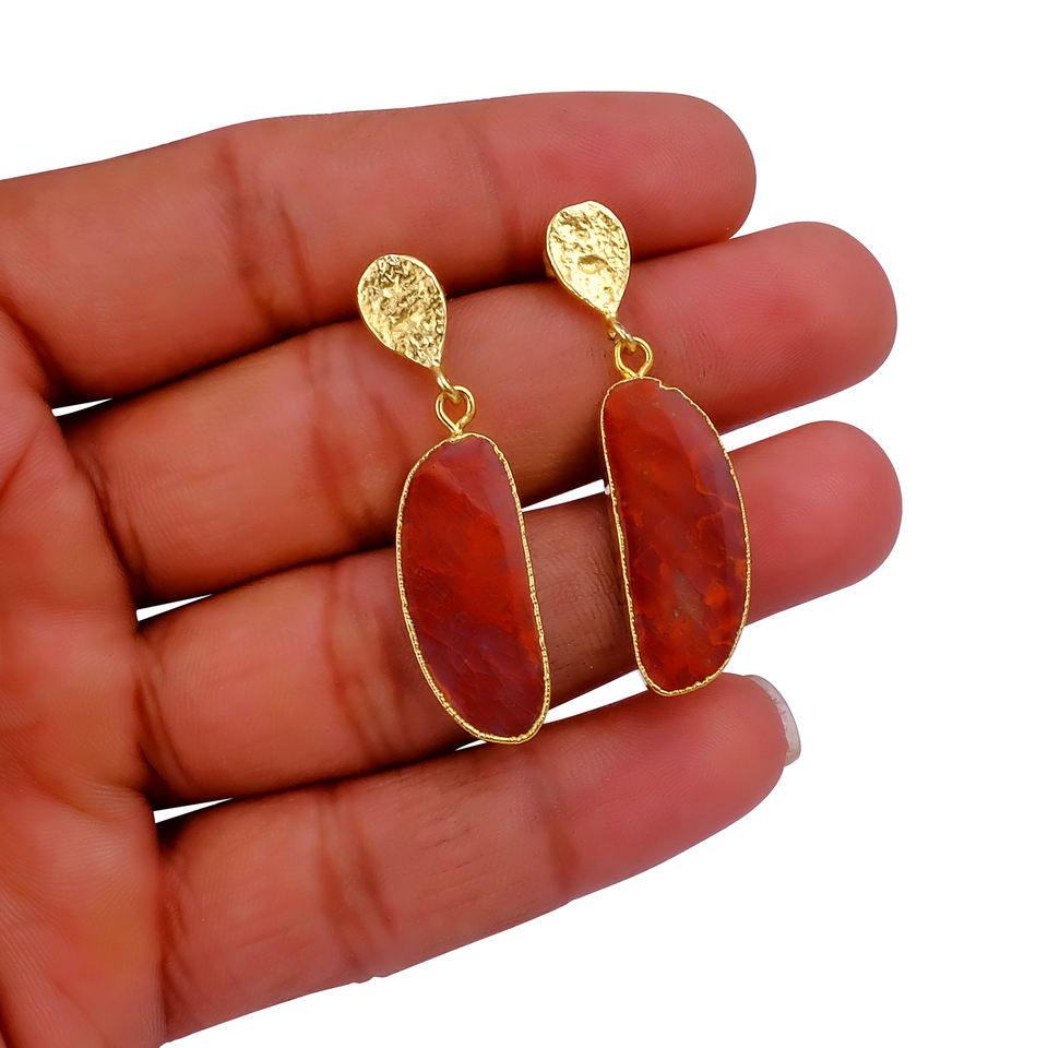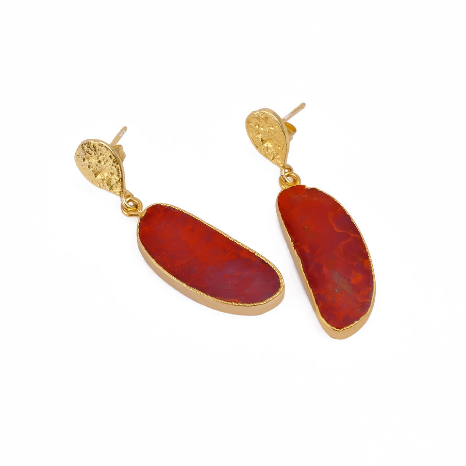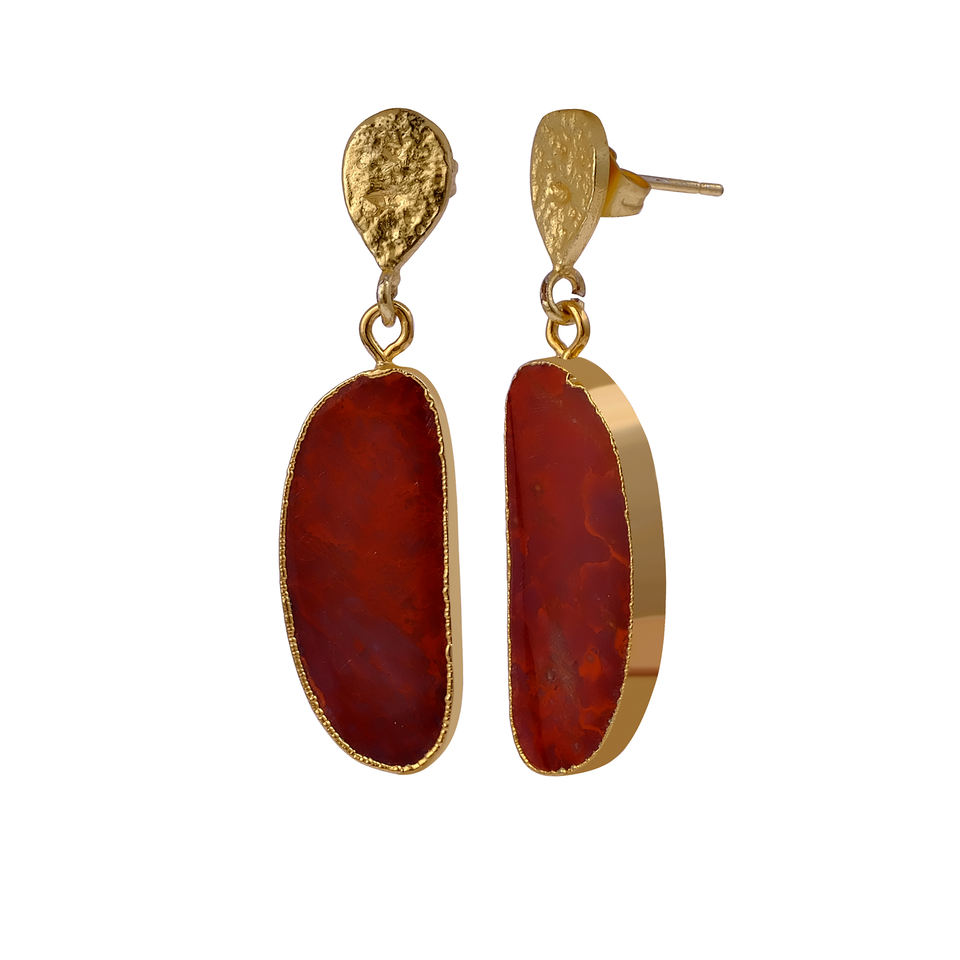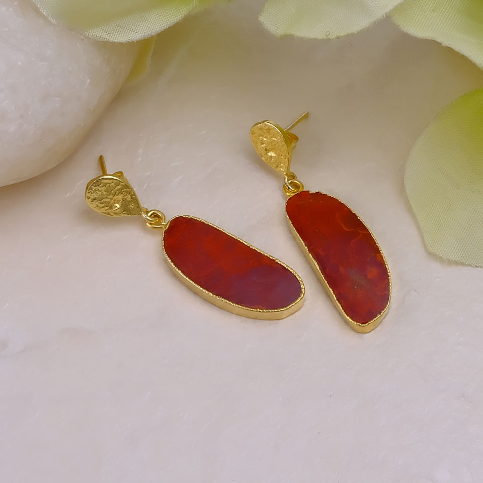 ต่างหูพลอยแจสเปอร์สีแดง ชุบทองเหลือง งานแฮนด์เมด ขายส่งจำนวนมาก รับผลิตตามสั่ง