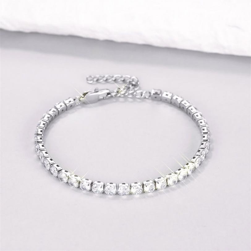 กำไลข้อมือสแตนเลสสตีล 316L กันน้ำ ไม่หมอง ทันสมัย ประดับเพชรซิคอน สำหรับผู้หญิง ดีไซน์เรียบหรู