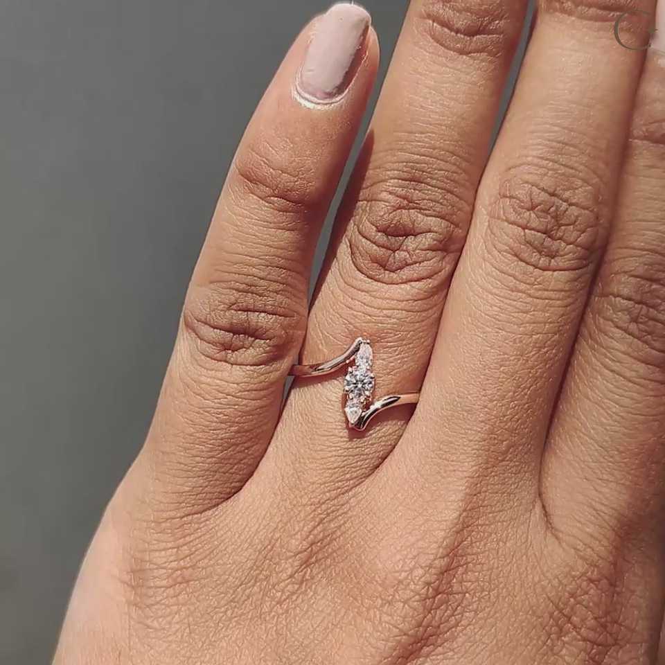 แหวนหมั้นมอสซาไนต์ทรงสามเม็ดทันสมัย ดีไซน์แบบบายพาส เงินแท้ 925 ทรงเหลี่ยมบริลเลียนต์และทรงหยดน้ำ ของขวัญวันครบรอบแต่งงาน