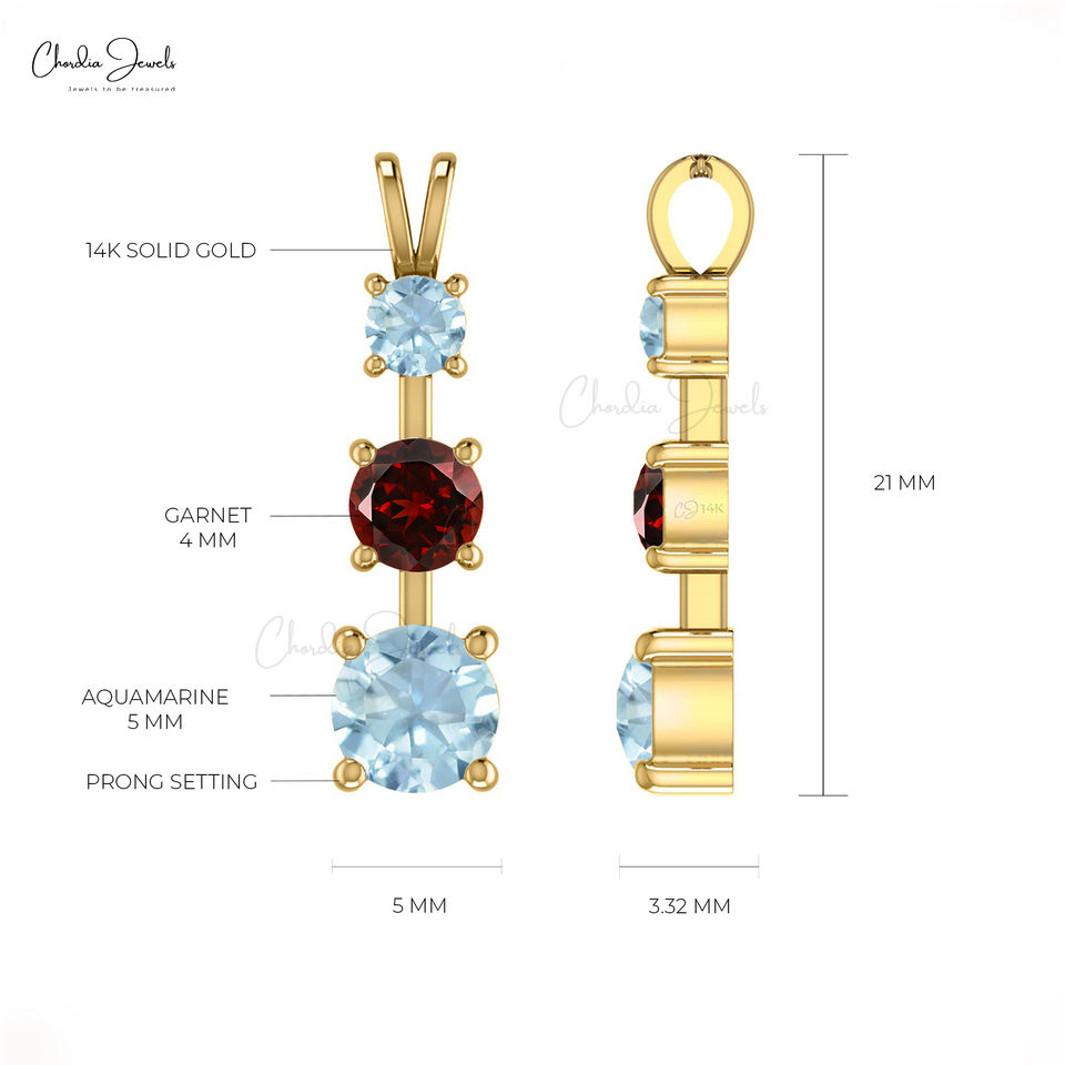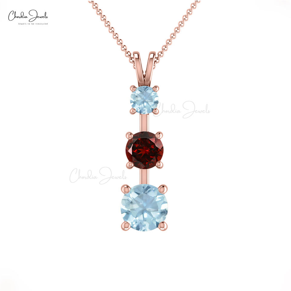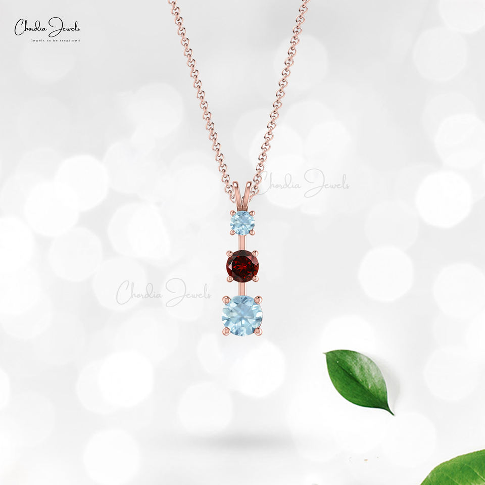 จี้หินสามชิ้นทันสมัยพร้อมทอง14k แท้0.4กะรัตโกเมนสีแดงและพลอยสีฟ้าชุดจี้