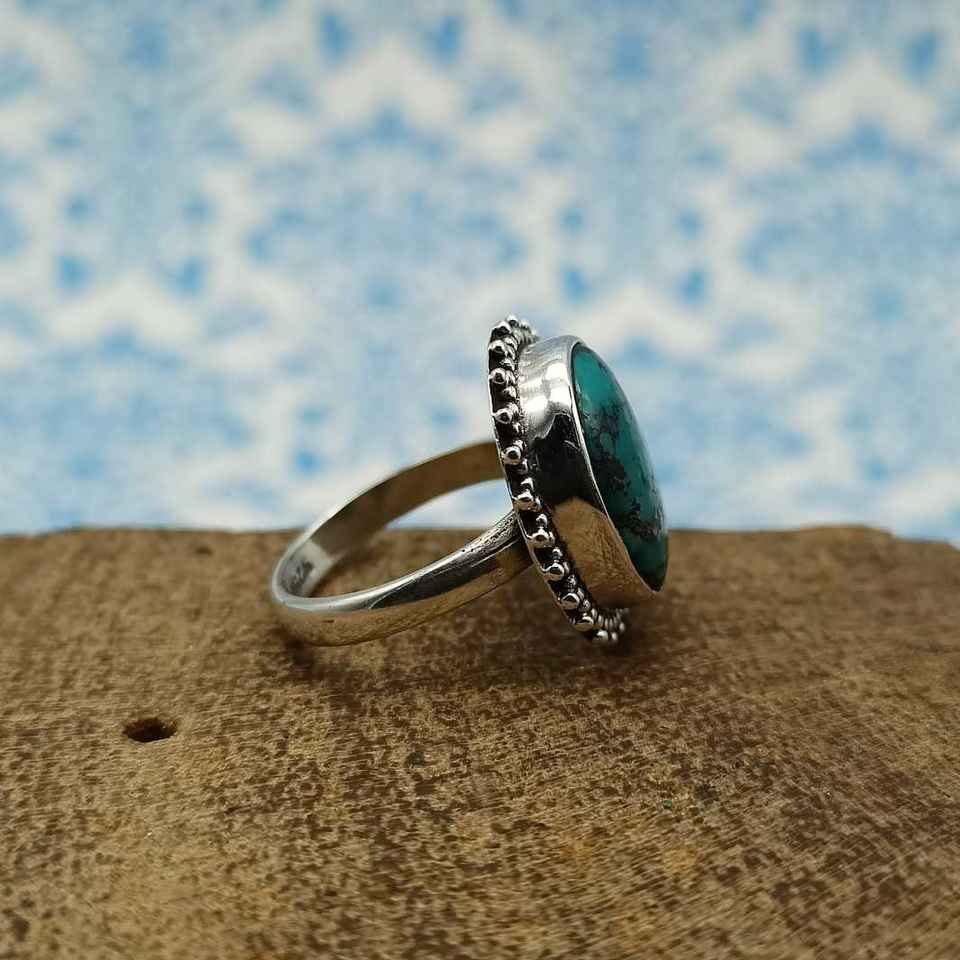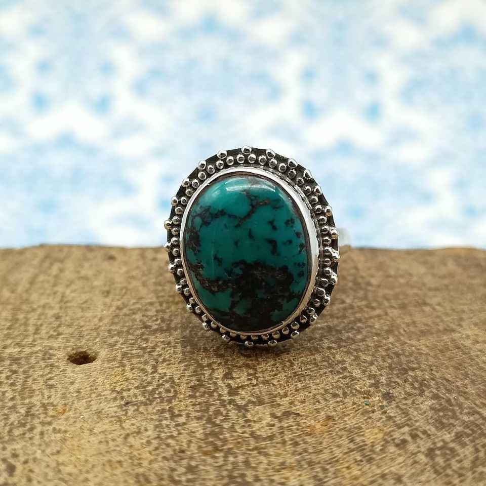 925พลอยเทอร์ควอยส์ทิเบตสุดอินเทรนด์แหวนเงินแท้ทำด้วยมือสำหรับผู้หญิงสำหรับงานแต่งงาน