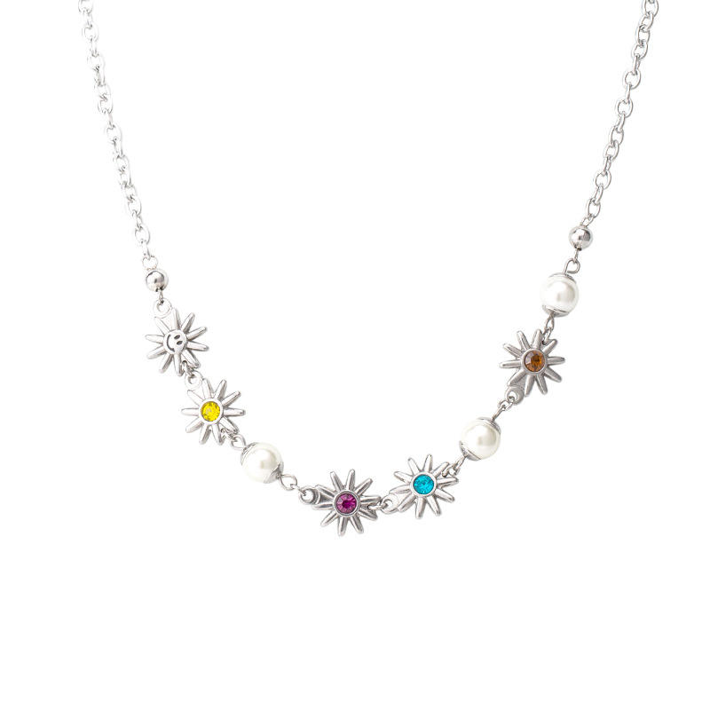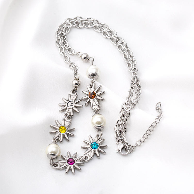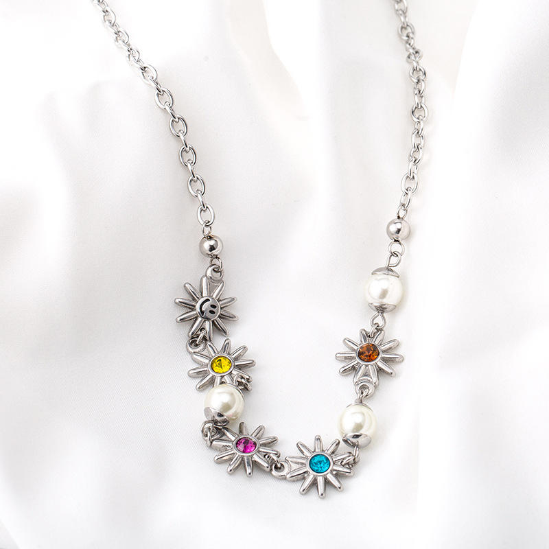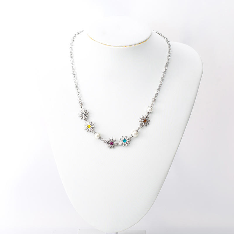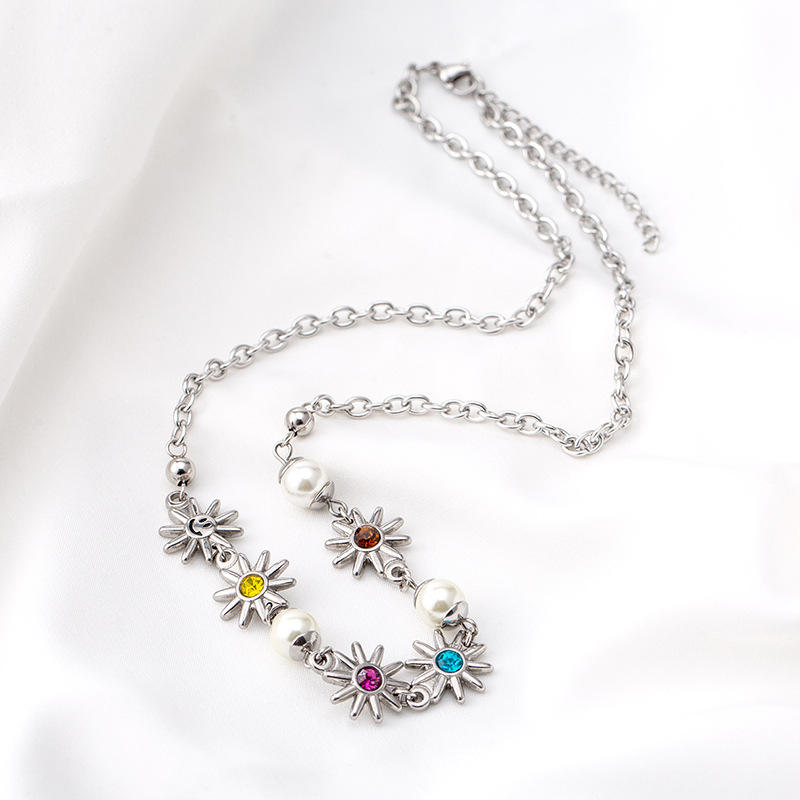 สร้อยคอไทเทเนียมรูปดอกเดซี่ประดับพลอยหลากสีสันสำหรับงานปาร์ตี้