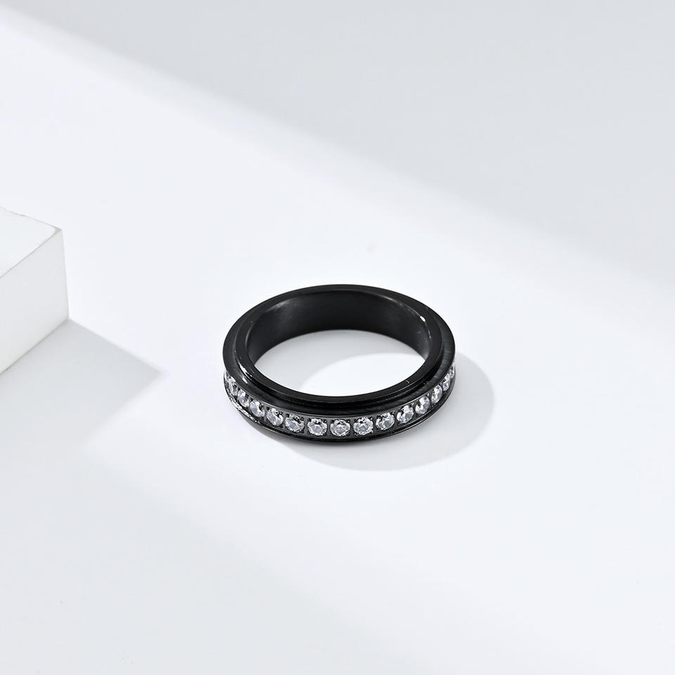 แหวนหมุนได้ประดับเพชรไทเทเนียมสตีลสุดอินเทรนด์สำหรับผู้หญิง สีทอง ของขวัญเครื่องประดับบรรเทาความเครียด