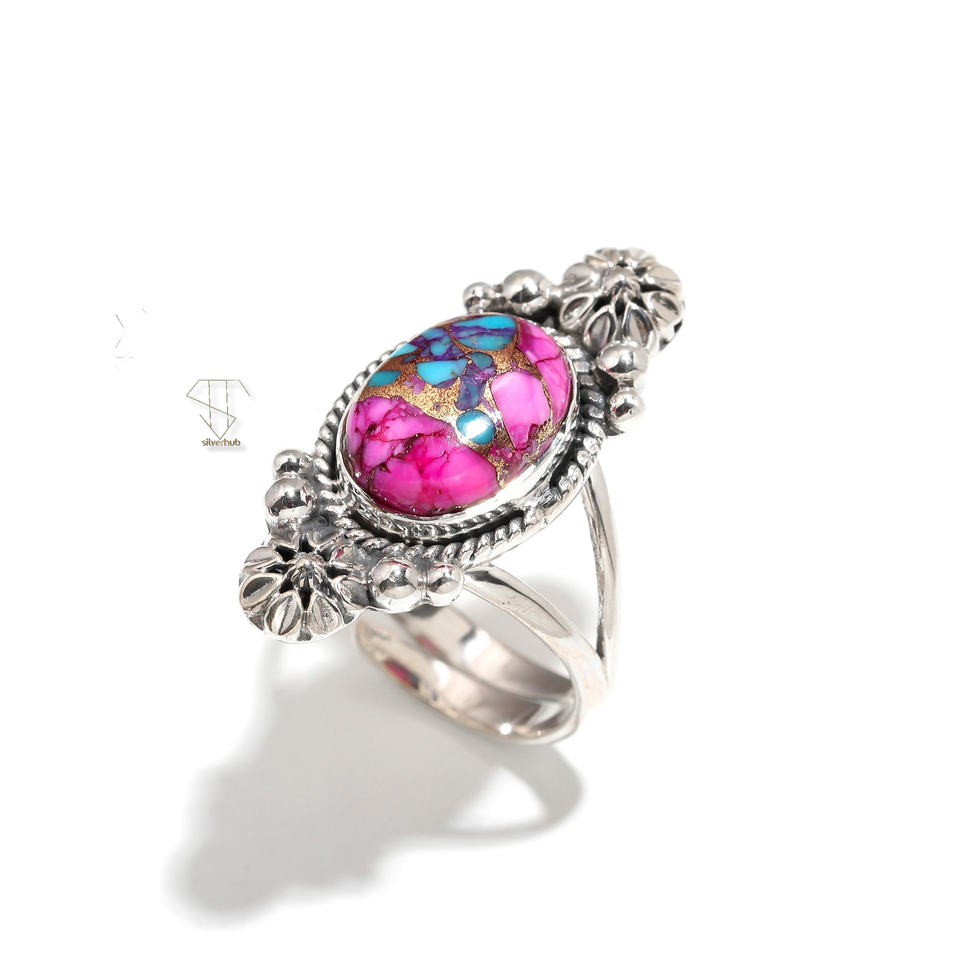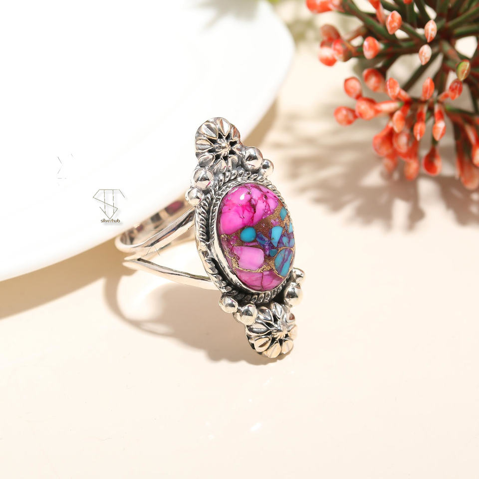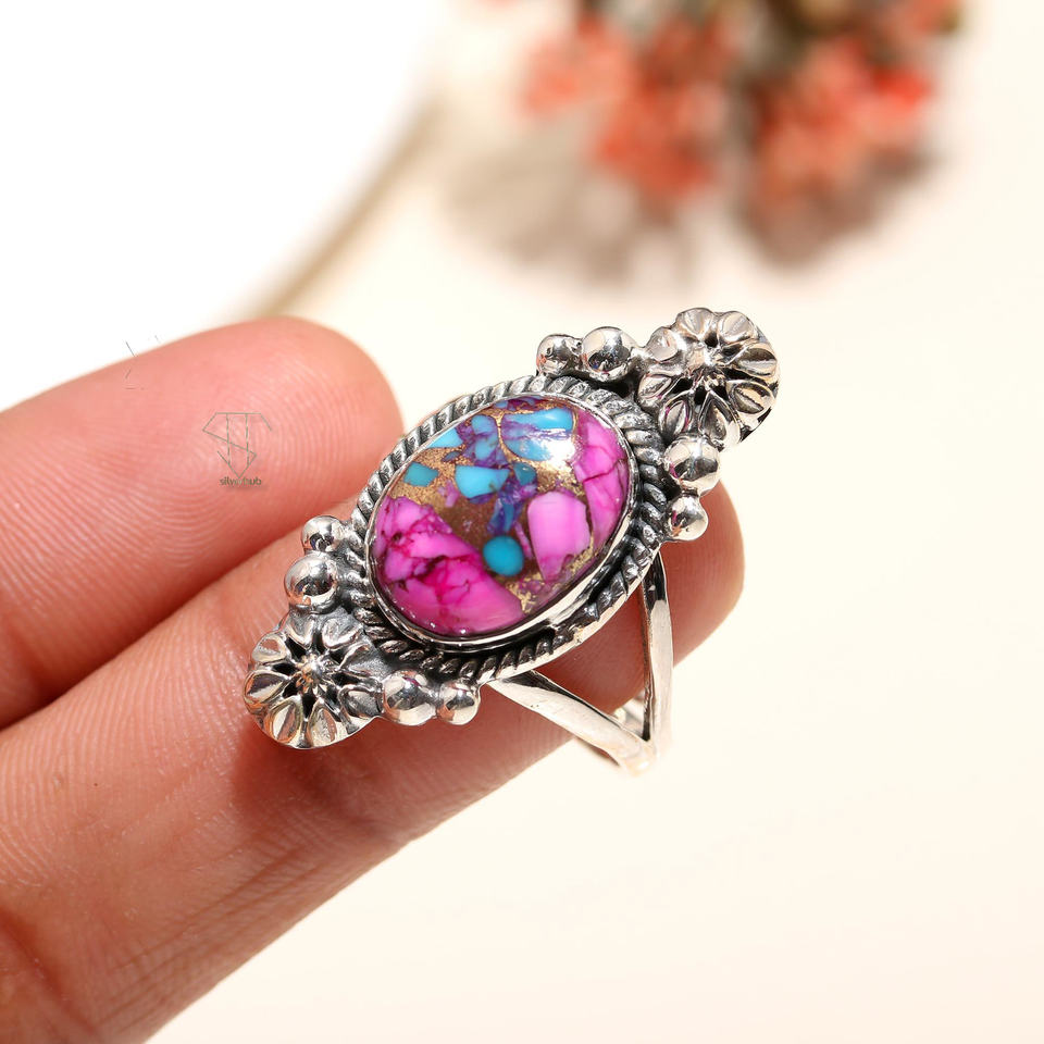 แหวนอัญมณีทำจากเงินสเตอร์ลิงวงแหวนอัญมณีสีชมพูสีเขียวขุ่นสำหรับ925อินเทรนด์