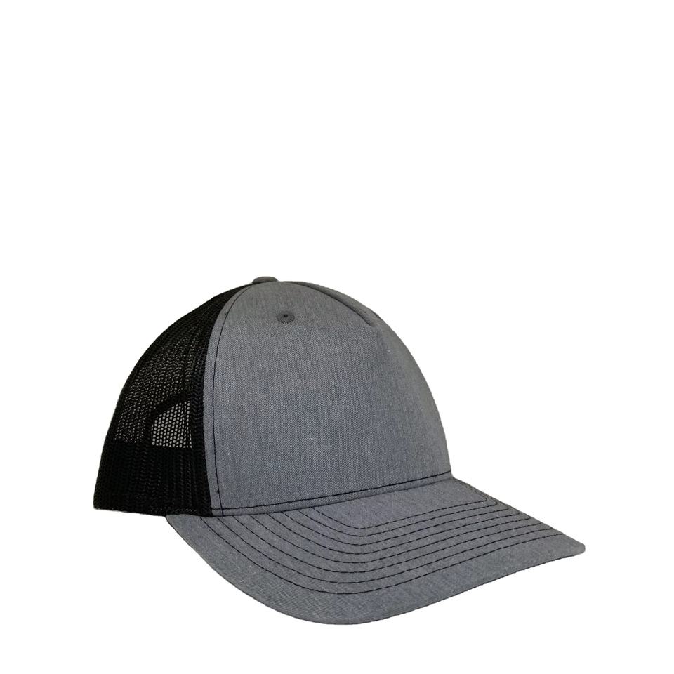 Trendy Two-Tone Trucker Hat Heather Charcoal 5 Panel Cap Custom PVC Patch Logo Mesh Hat Breathable Sport Bulk Wholesale Supplier