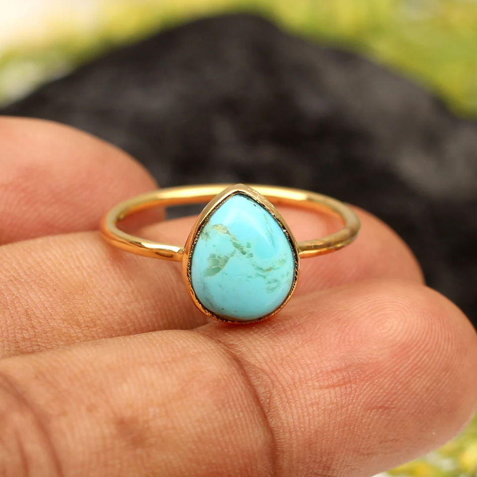 แหวนสไตล์ลูกแพร์สีเงินสเตอร์ลิง18K ประดับอัญมณีสีเทอร์ควอยส์ Arizona ขนาด7x10มม. สำหรับผู้หญิงสำหรับปาร์ตี้