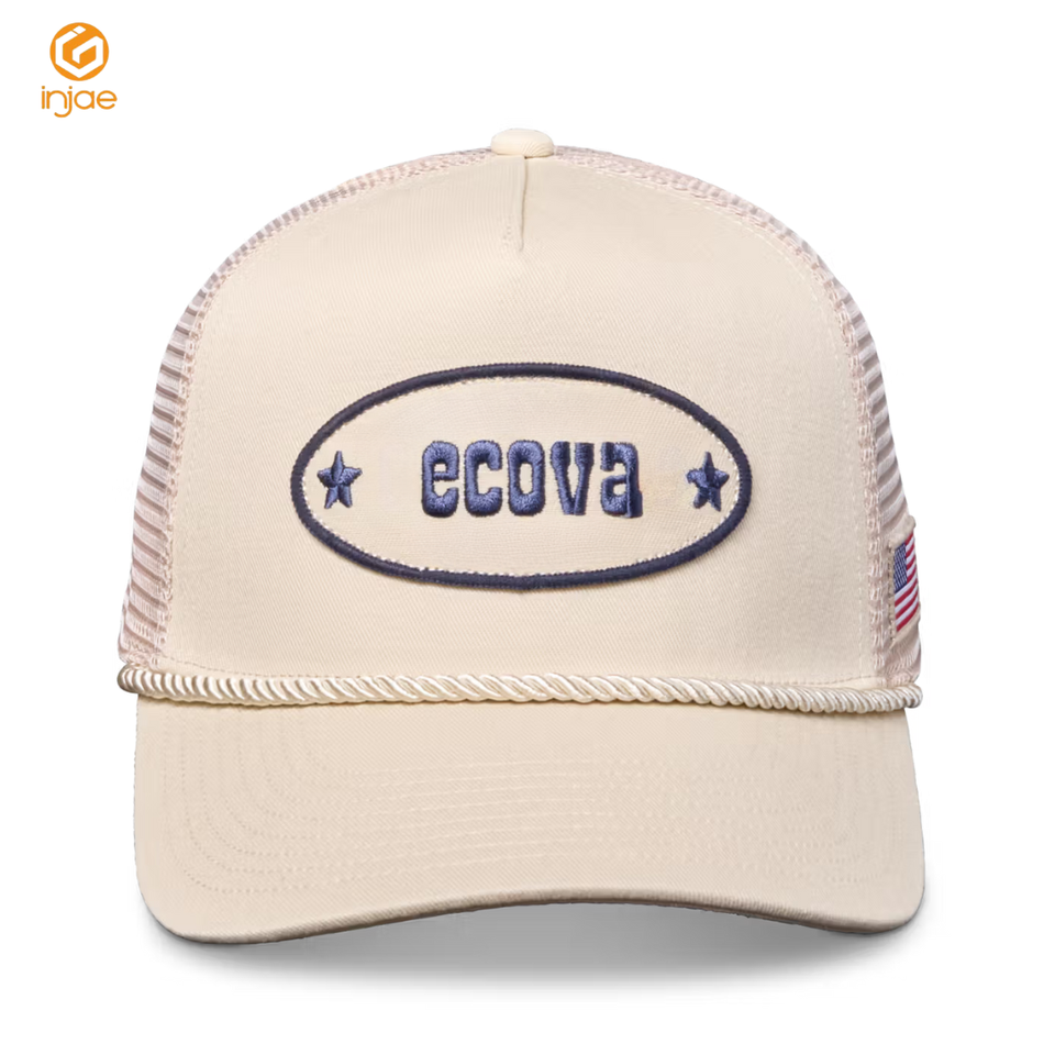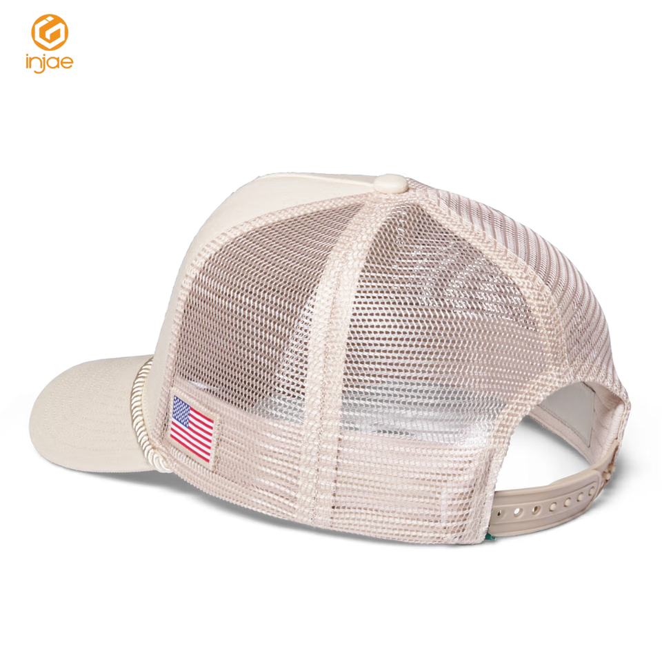 หมวกแก๊ปตาข่ายสุดอินเทรนด์ใช้ได้ทั้งชายและหญิงดีไซน์เชือก5แผงดีไซน์2D ปักโลโก้3D ภาษีต่ำทำจากผ้าใบเดนิม
