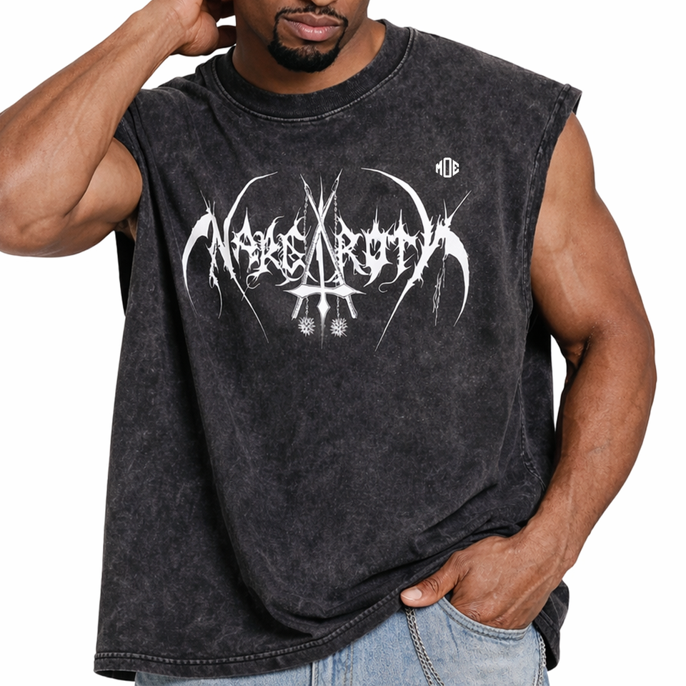 เสื้อยืดแขนกุดทรงโอเวอร์ไซส์สไตล์วินเทจสุดเทรนดี้สำหรับผู้ชาย ลวดลายกราฟิกแบบย้อมสีเอซิด ผลิตจากผ้าฝ้าย 100% เสื้อกล้ามสตรีทแวร์ รับผลิตตามแบบ OEM จำนวนมาก
