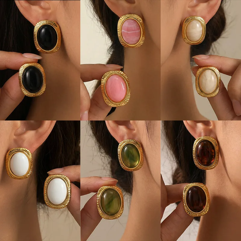 ต่างหูเรซิ่นสแตนเลสวินเทจสุดฮิตสำหรับผู้หญิง ชุบทอง 18K น้ำหนักเบา ดีไซน์โดดเด่น เครื่องประดับสำหรับใส่ทุกวัน