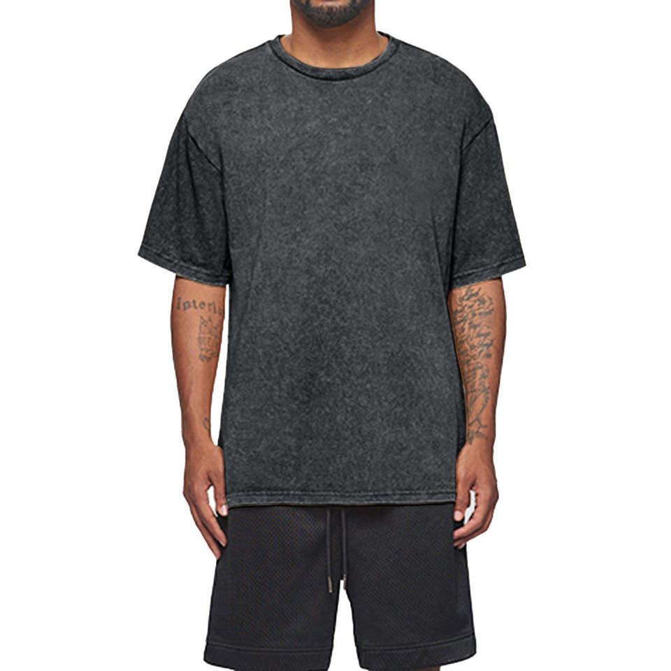 เสื้อยืดผู้ชายผ้ายีนส์ฟอกสี
