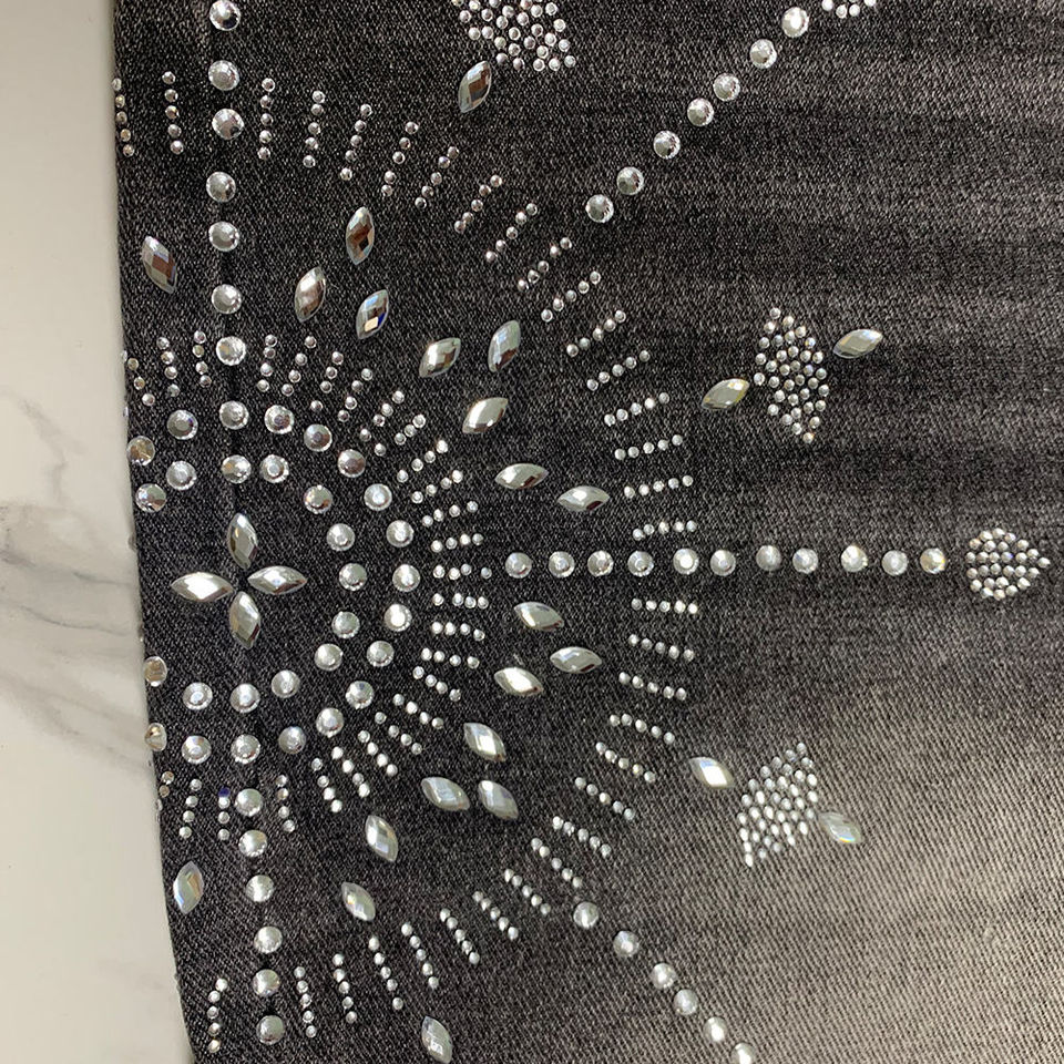 กางเกงขาสั้นผ้ายีนส์ทรงหลวมสำหรับผู้ชายกางเกงขาสั้นแนววินเทจประดับคริสตัลพลอยเทียม