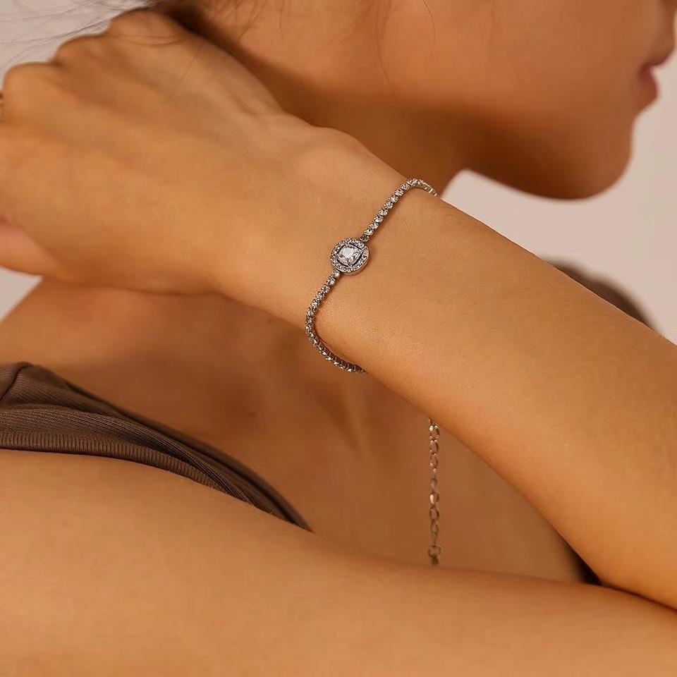 สร้อยข้อมือสแตนเลสสตีลกันน้ำทันสมัยสำหรับเทนนิสสร้อยข้อมือเซอร์คอนประดับลูกปัดมีคุณภาพเครื่องประดับสำหรับงานแต่งงานเป็นแรงบันดาลใจให้เพื่อนเจ้าหญิง