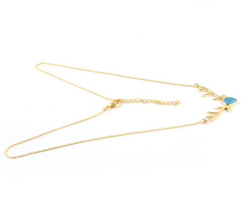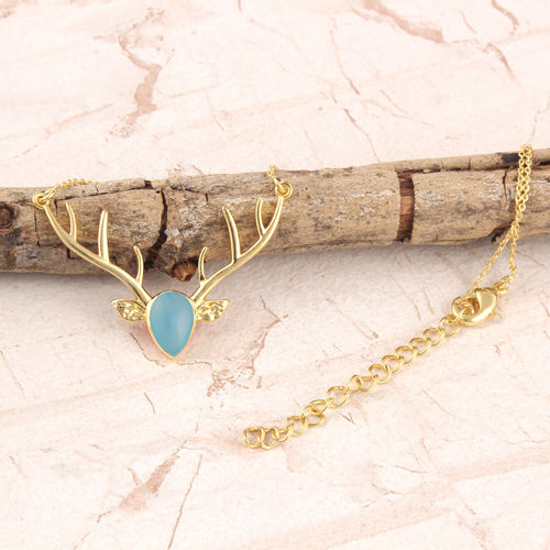 สร้อยคอแฟชั่นจี้เขากวางเคลือบทองทองเหลือง24K,เครื่องประดับสร้อยคอแฟชันสีฟ้าแคลเซโดนีดีไซน์ทันสมัยสำหรับสวมใส่กับเครื่องประดับ