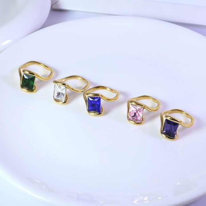 แหวนสแตนเลสชุบทอง 18K PVD ประดับเพทายสีม่วง ดีไซน์ทันสมัย ปรับขนาดได้ สำหรับผู้หญิง ขายส่งแบบกำหนดเองได้
