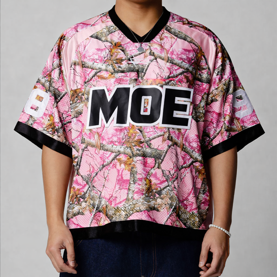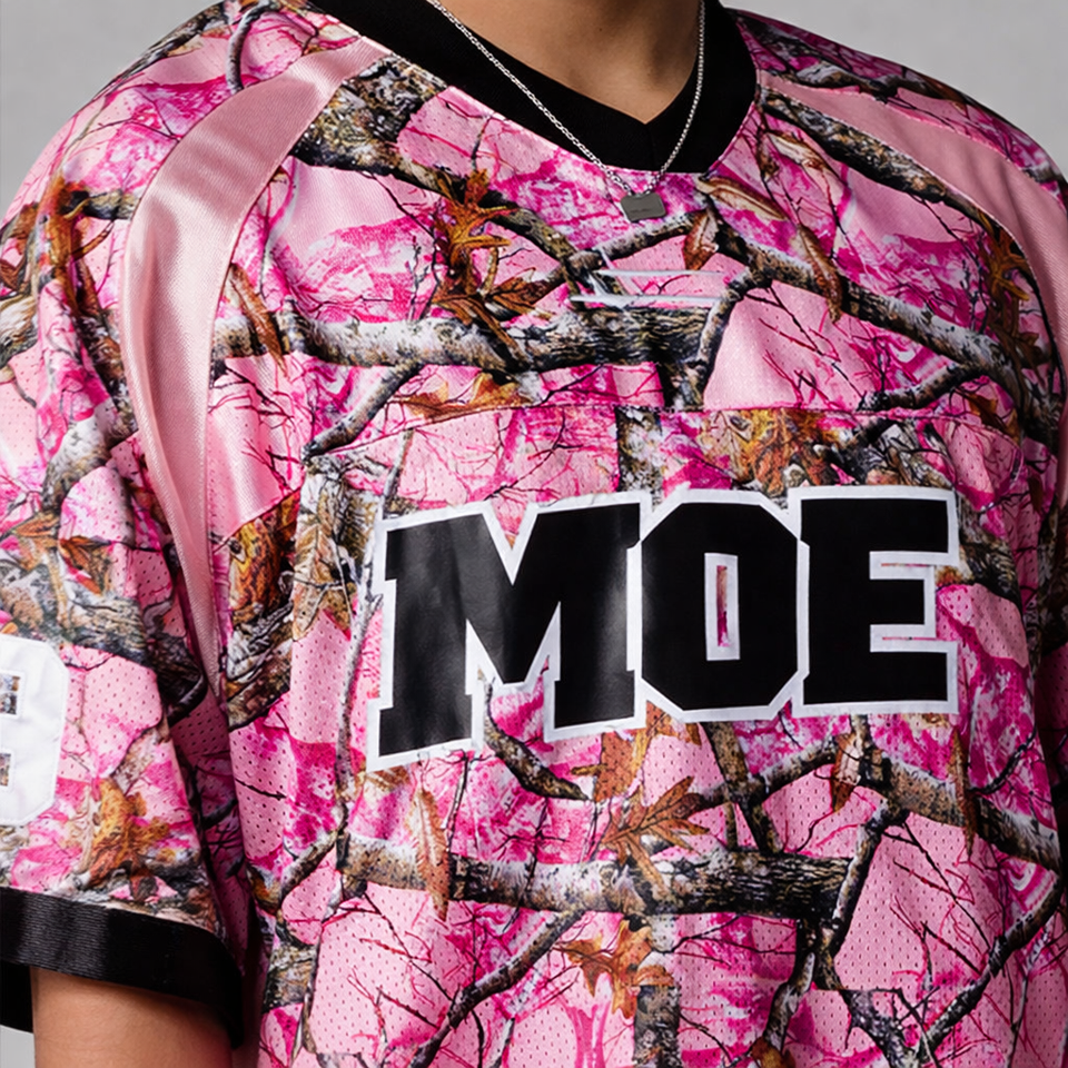 เสื้อเจอร์ซีย์อเมริกันฟุตบอลลายพรางสีชมพูแบบโอเวอร์ไซส์สั่งทำได้ตามต้องการ ขายส่งราคาถูก รับผลิตแบบ OEM และติดฉลากส่วนตัว
