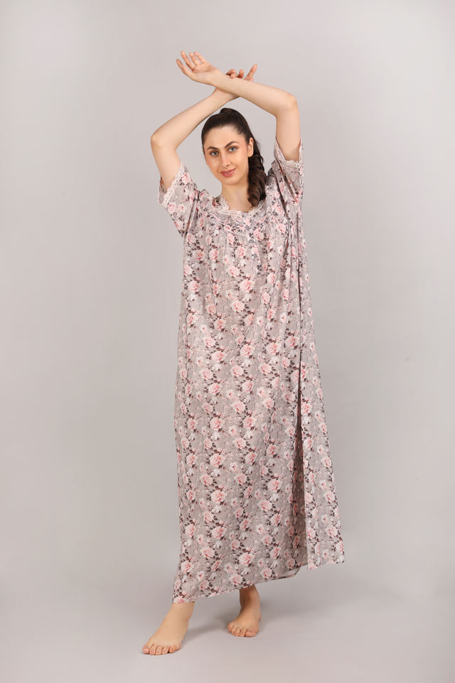 ชุดเดรสใส่กลางคืนผ้าฝ้ายแขนสั้นชุดสวมใส่สบายระบายอากาศได้ดีชุดใส่นอนสุดหรูทันสมัย