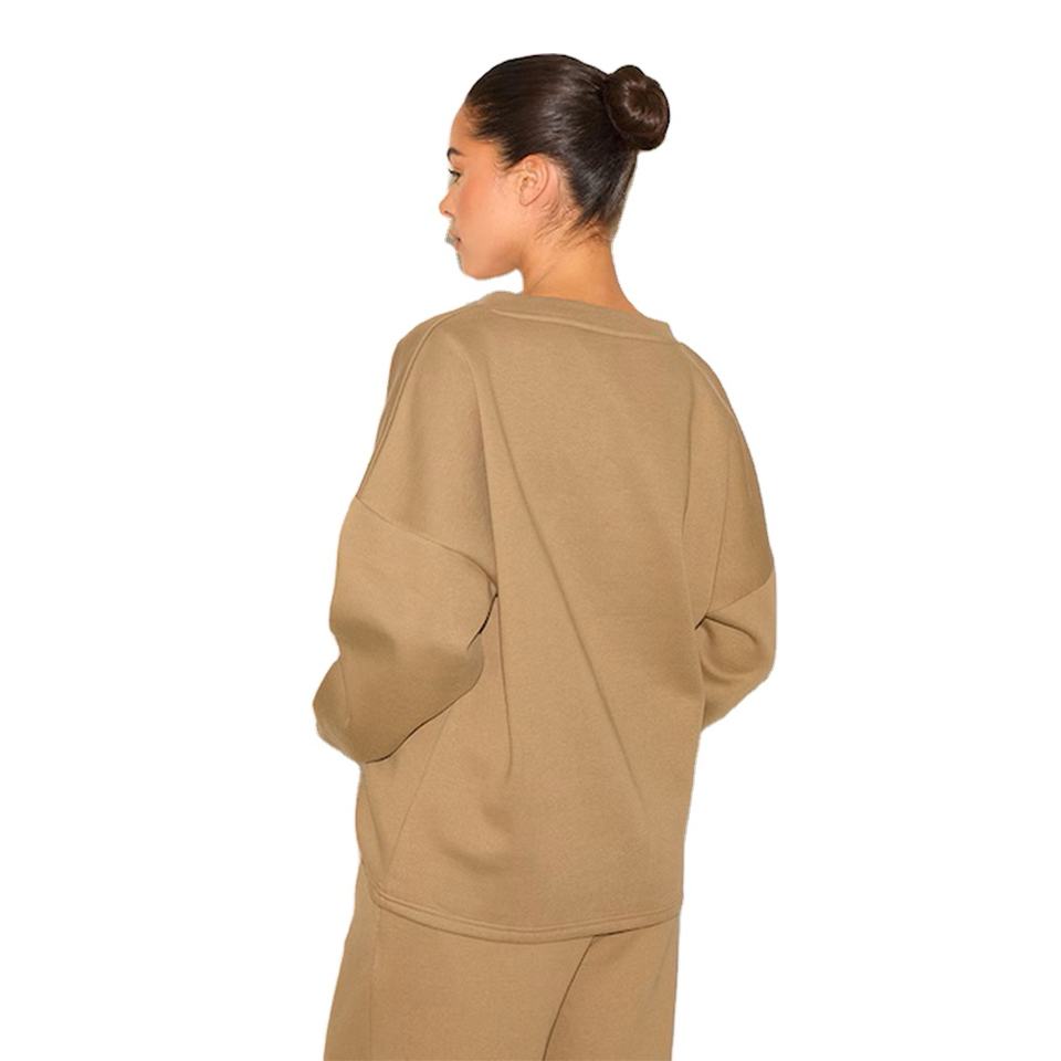 เสื้อสเวตเตอร์ทรงลูกเรือสำหรับผู้หญิงทันสมัยผ้าฟลีซให้ความอบอุ่นสไตล์ธรรมดาสวมใส่สบายใส่ได้ทุกวันออกแบบฉลากได้ตามต้องการ