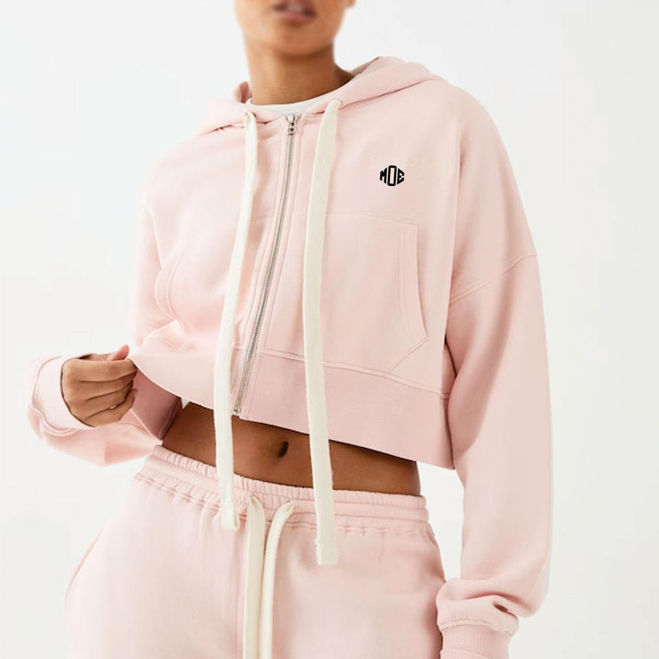 เสื้อฮู้ดครอปซิปสำหรับผู้หญิง แฟชั่นทันสมัย รับทำโลโก้ เสื้อฮู้ดผ้าฝ้ายฟลีซทรงโอเวอร์ไซส์ สไตล์สตรีทแวร์ รับผลิตแบบ OEM และติดฉลากสินค้าส่วนตัว