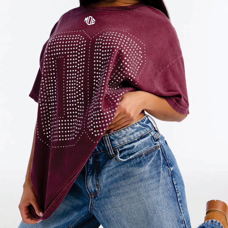 เสื้อยืดโอเวอร์ไซส์ผ้าคอตตอนเจอร์ซีย์สำหรับผู้หญิงสุดเทรนดี้ ลายกราฟิกตัวเลขประดับเพชร สไตล์สตรีทแวร์ แขนสั้น รับผลิตเสื้อยืดผู้ชายแบบ OEM แบรนด์ส่วนตัว