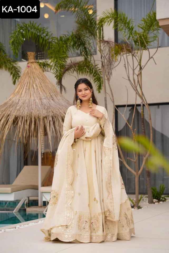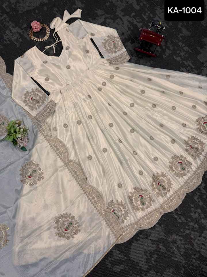 ชุดผ้าไหม anarkali ทันสมัยสำหรับผู้หญิงชุดคลุมยาวผ้าไหม Chinon สไตล์แฟนซีพร้อมการเข้ารหัสด้วย sequnce