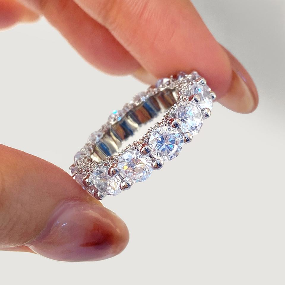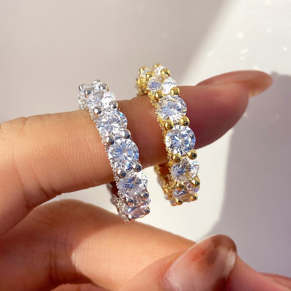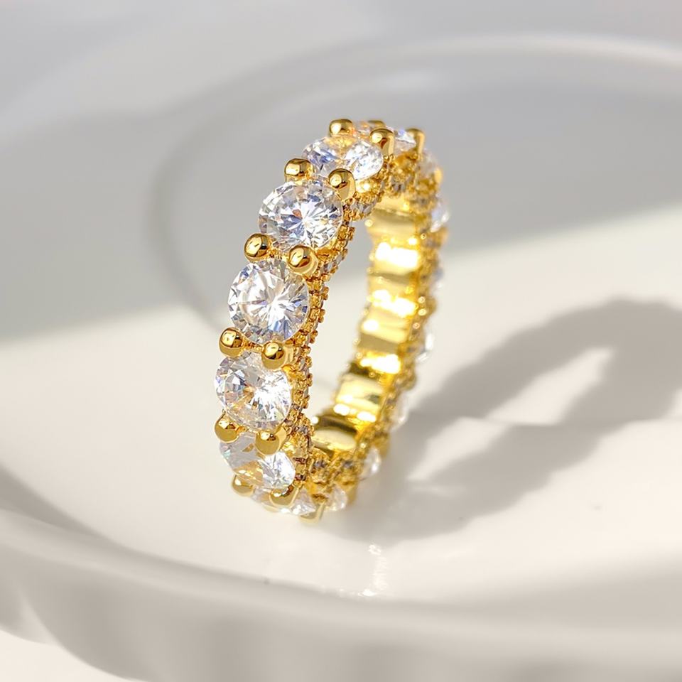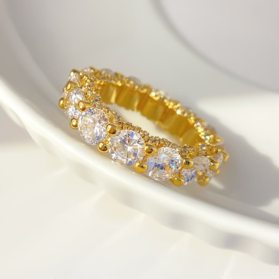 เครื่องประดับแฟชั่นสำหรับผู้หญิงสุดอินเทรนด์ แหวนเพชรซิคอนเต็มวงชุบทอง 18K ระยิบระยับ เหมาะสำหรับสวมใส่ทุกวัน