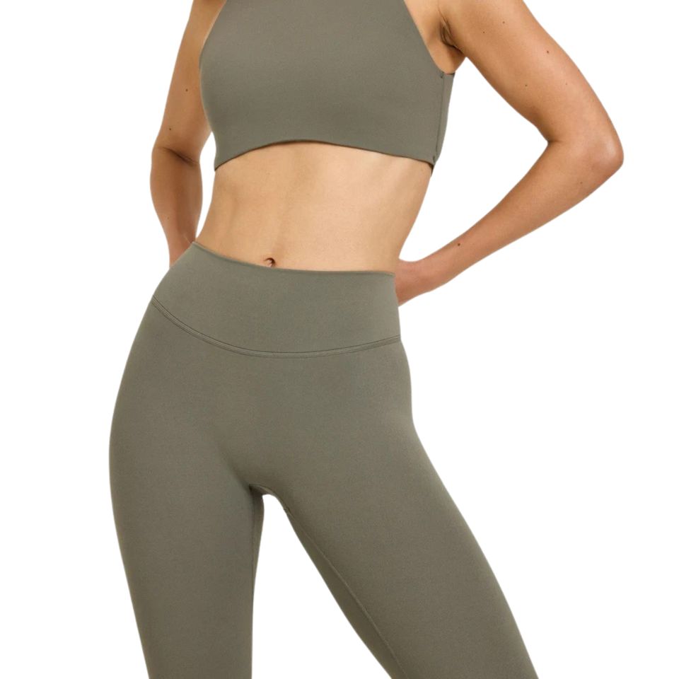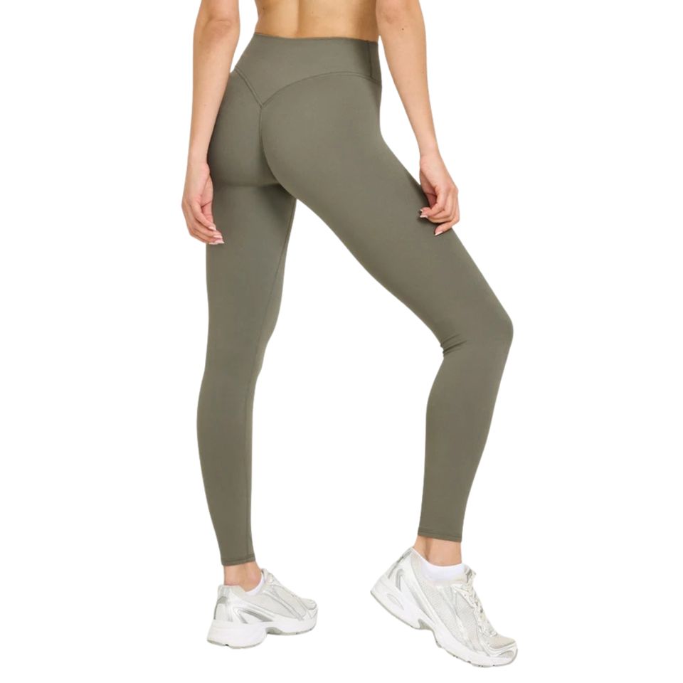 Trendy Women's Brushed Naked Feel Solid Mid Yoga Leggings V Back Butt Lifting Gym Pants for Workout Tights Activewear