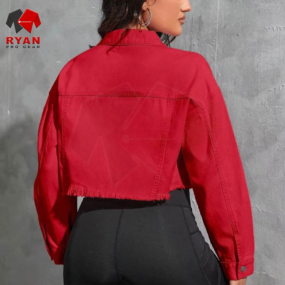 Trendy Women's Denim Jacket with Classic Collar, Button Closure and Long Sleeve Modern Style