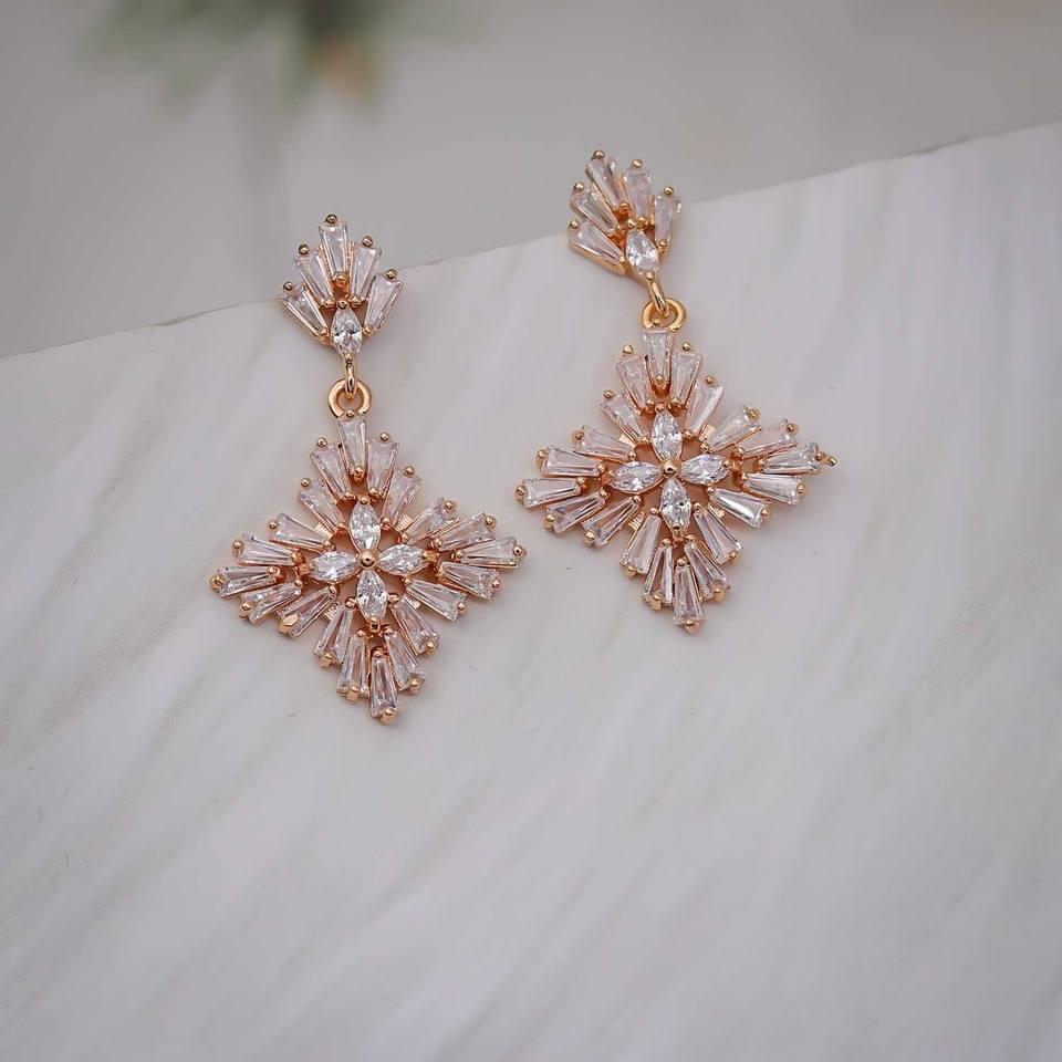 ต่างหูแบบห้อยสำหรับผู้หญิง ดีไซน์เก๋ ทันสมัย ชุบทองป้องกันการหมอง ผลิตจากโลหะผสมสังกะสี ประดับเพชรซิคอน รูปทรงเกล็ดหิมะ ความใสสูง เหมาะสำหรับงานแต่งงาน
