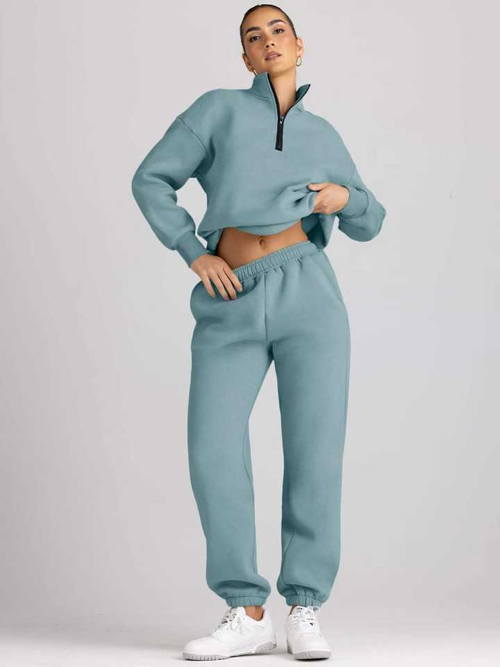 ชุดแฟชั่นผู้หญิงสุดฮิต รับสกรีนโลโก้ ชุดวอร์มลำลองสำหรับฤดูหนาว เนื้อผ้าระบายอากาศ คอกลม ปักลาย 100% ผ้าเนื้อเดียว