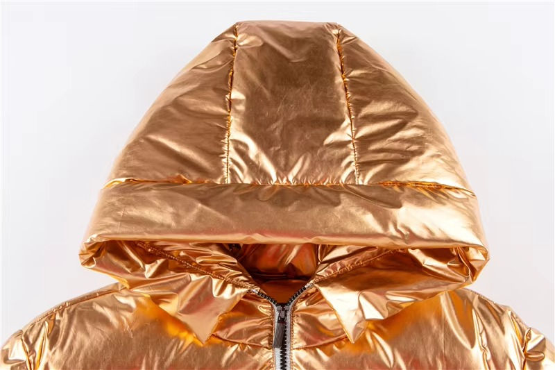 เสื้อแจ็คเก็ตผู้หญิงแฟชั่นทรงพองแบบเมทัลลิก เสื้อพัฟเฟอร์เงา เสื้อแจ็คเก็ตน้ำหนักเบาสำหรับฤดูหนาว รับผลิตตามแบบ (OEM) เสื้อผ้าแฟชั่น