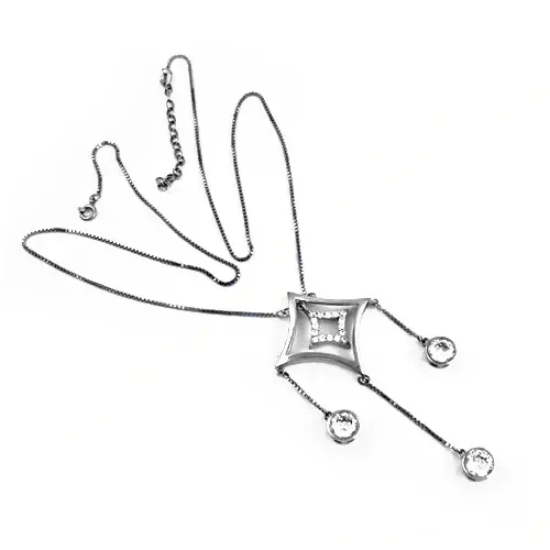 สร้อยคอจี้ทรงเรขาคณิตสีเงินสำหรับผู้หญิง ดีไซน์ทันสมัย ชุบทอง ประดับคริสตัล เพชร และมุก บนโซ่แบบลิงค์ ทำจากทองเหลือง