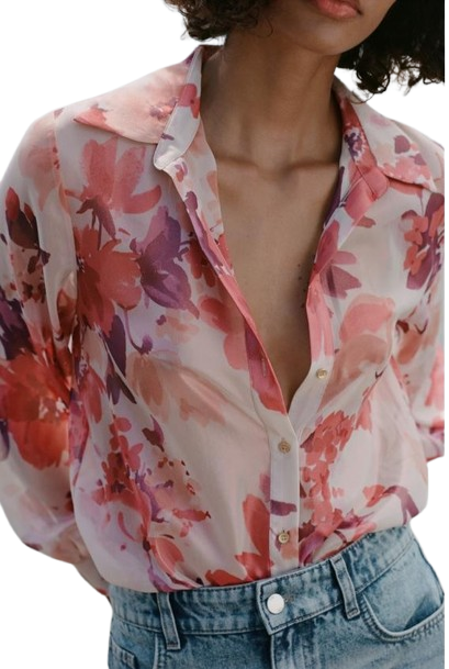 เสื้อลายดอกไม้ของผู้หญิงทันสมัยที่มีลวดลายที่สดใสและสวมใส่สบายสำหรับใส่ในชีวิตประจำวันสินค้าส่งออกจำนวนมาก
