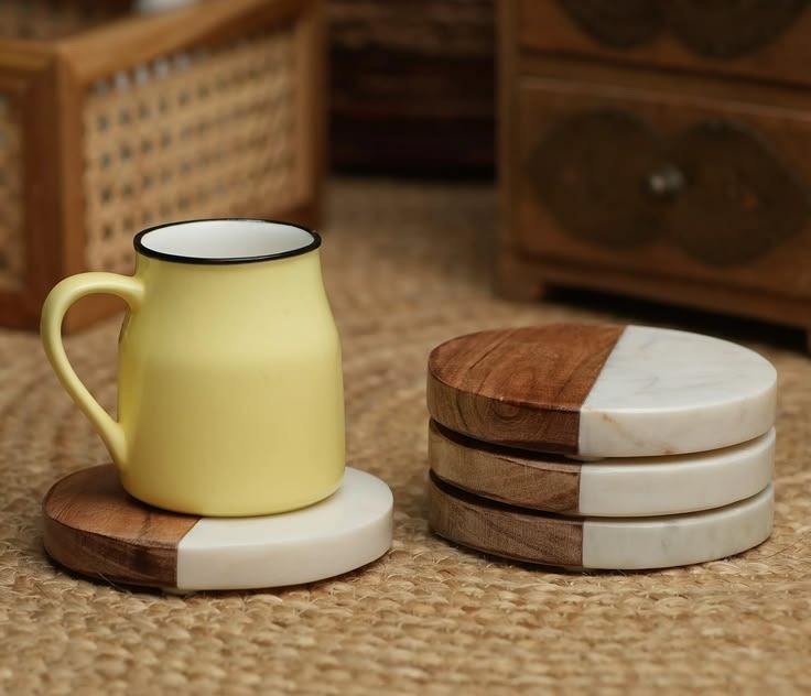 ชุดจานรองแก้วไม้และหินอ่อนสุดทันสมัยสำหรับตกแต่งโต๊ะอาหารในอพาร์ทเมนต์สมัยใหม่