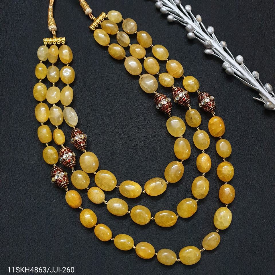 สร้อยคอชุบทองสีเหลืองสุดอินเทรนด์พร้อมลูกปัดสีม่วงแดง Meenakari