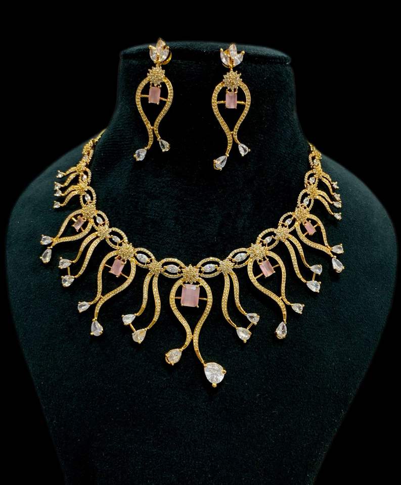ชุดสร้อยคอเพชรเพทายสุดอินเทรนด์พร้อมต่างหูสร้อยคอเคลือบทองสำหรับงานแต่งงาน CZ zircon Diamond Wedding สำหรับผู้หญิง