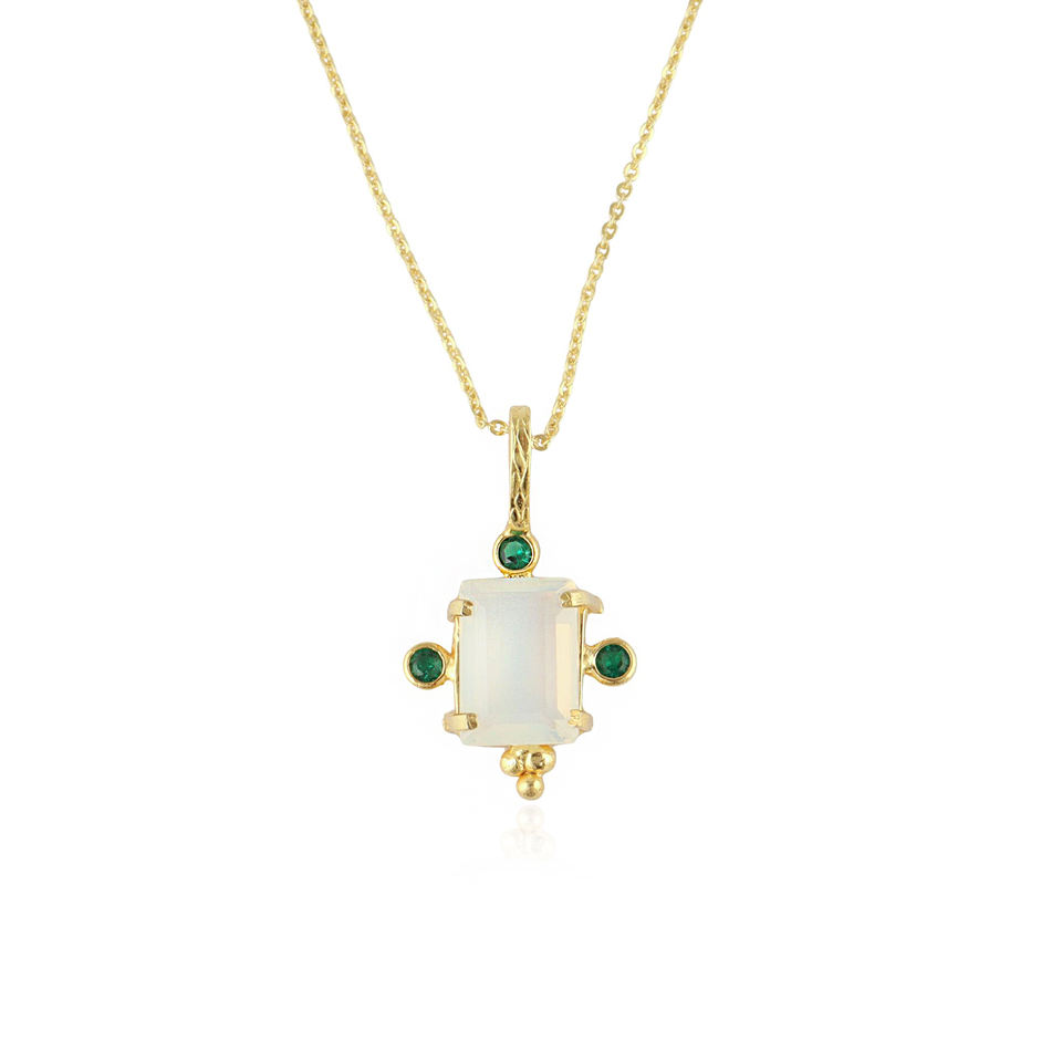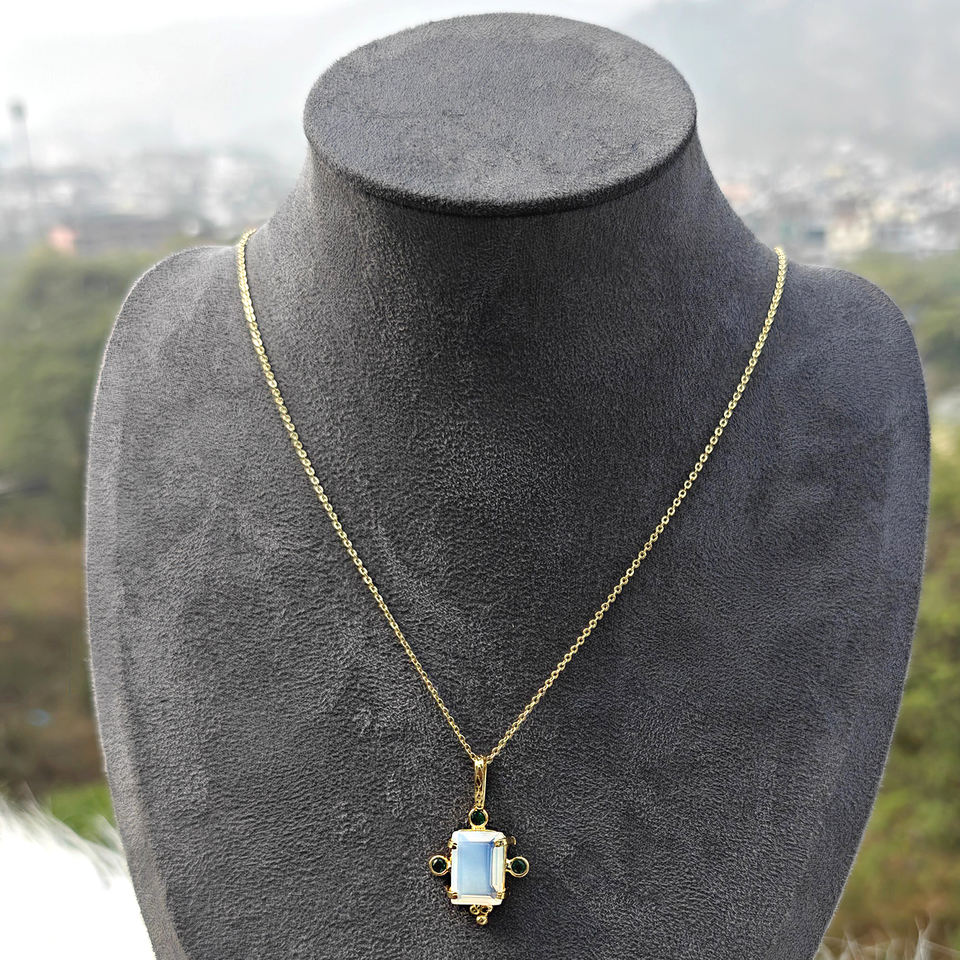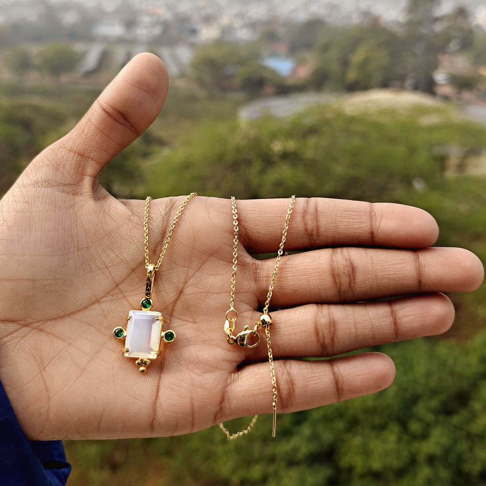 คอลเลคชั่นสุดฮิต โอปอลไลท์ควอตซ์สีขาว ประดับมินิมรกตควอตซ์ CZ ชุบทอง 18K จี้ปรับขนาดได้ สร้อยคอทองเหลืองน้ำหนักเบา