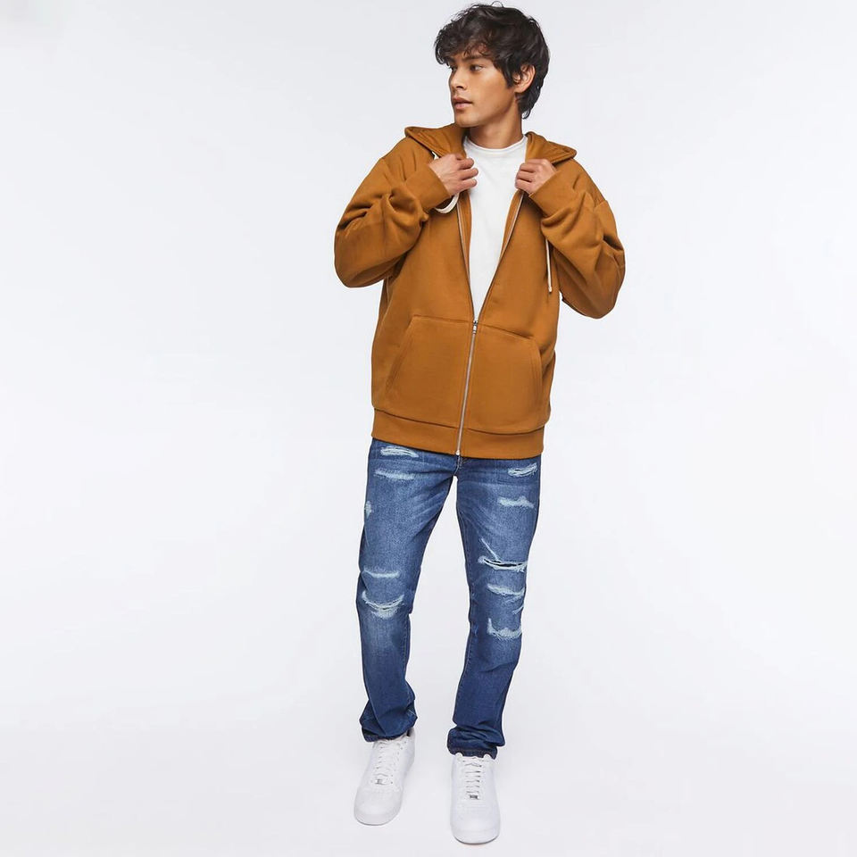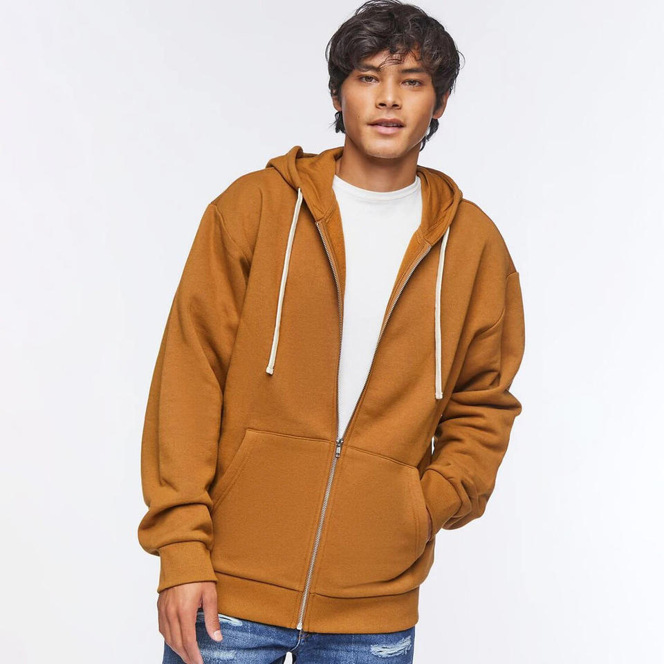 เสื้อฮู้ดดี้ผู้ชายทรงโอเวอร์ไซส์ ดีไซน์เรียบง่าย สวมใส่สบาย ผ้าฝ้ายฟลีซเนื้อนุ่ม ซิปยาวเต็มตัว ทรงหลวม สไตล์สตรีทแวร์