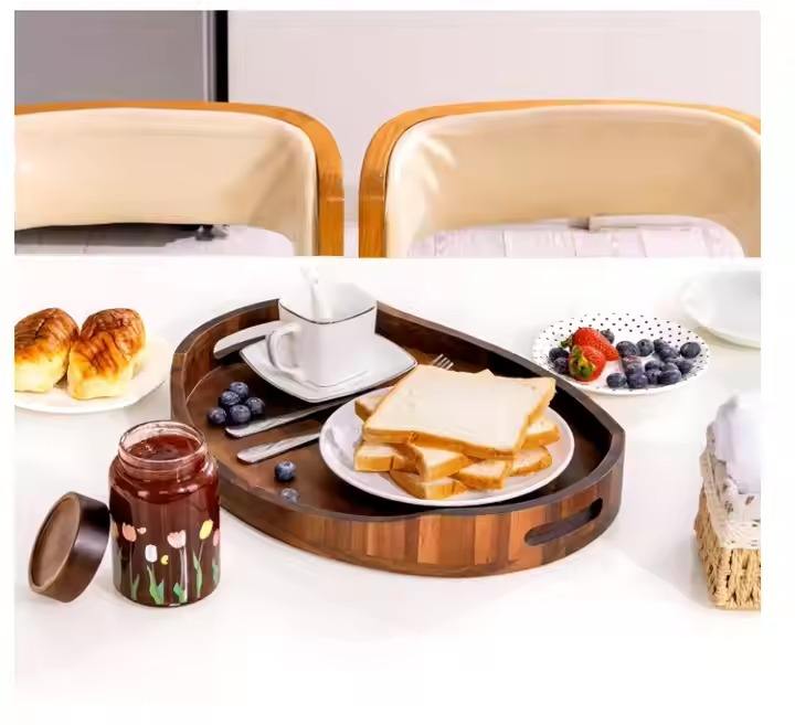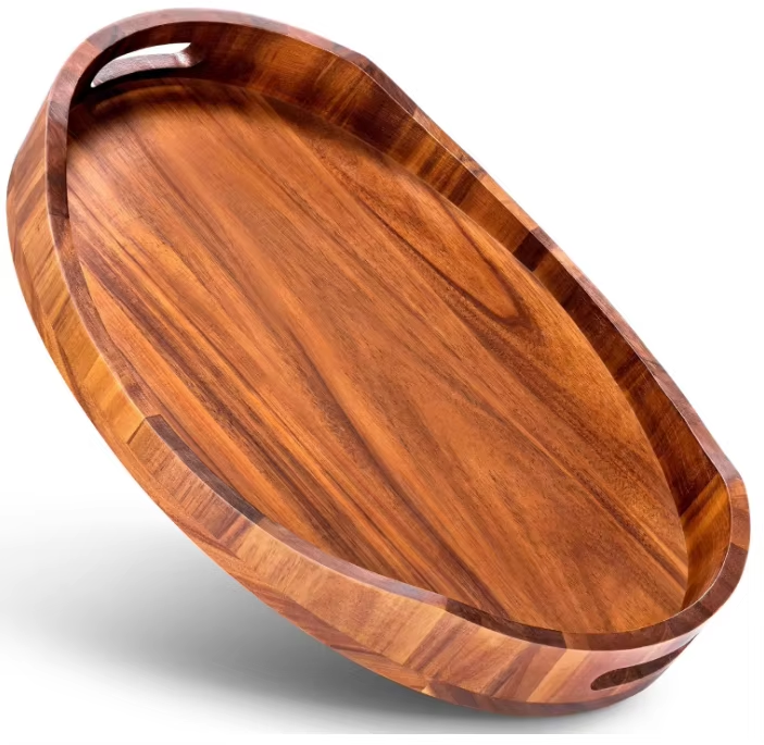 ถาดเสิร์ฟไม้สไตล์อินเทรนด์เป็นผลงานศิลปะที่แสดงลวดลายของเมล็ดข้าวที่เป็นเอกลักษณ์ซึ่งทำให้ทุกชิ้นเป็นของแท้