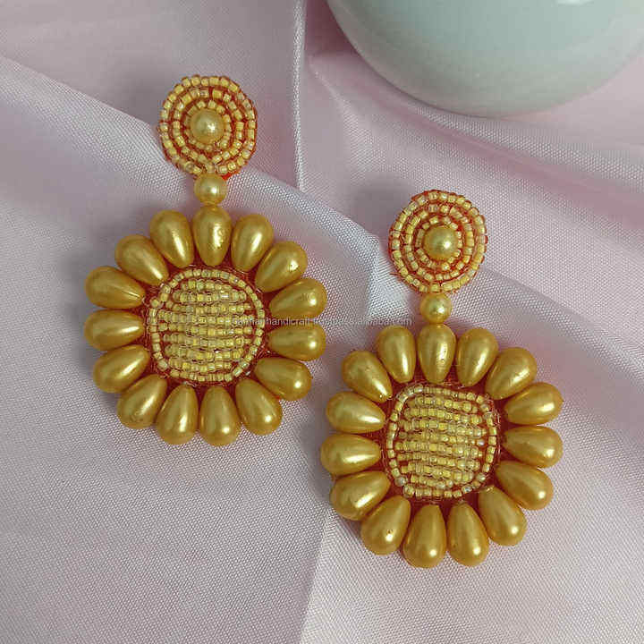 เครื่องประดับลูกปัดทำมือที่ทันสมัยต่างหูแบบปักด้วยมือดีไซน์แบบห้อยสีเหลืองและสีขาวต่างหูดีไซน์สวย