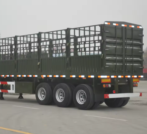 รถพ่วงกึ่งพ่วงแบบสามเพลาสำหรับขนส่งสินค้าและปศุสัตว์