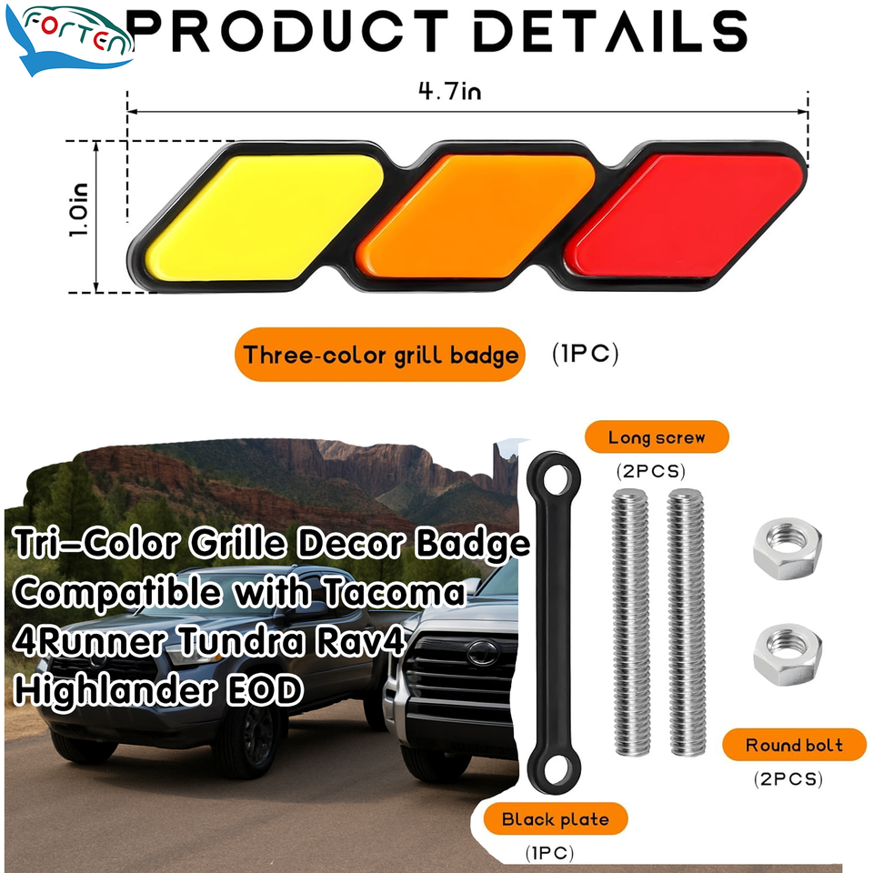 สติกเกอร์ติดกระจังหน้ารถยนต์3สีคุณภาพสูงตราสัญลักษณ์อะคริลิคสำหรับโตโยต้าทาโคมา4รันเนอร์ทุนดรา RAV4ไฮแลนเดอร์ EOD รูปลอกรถ