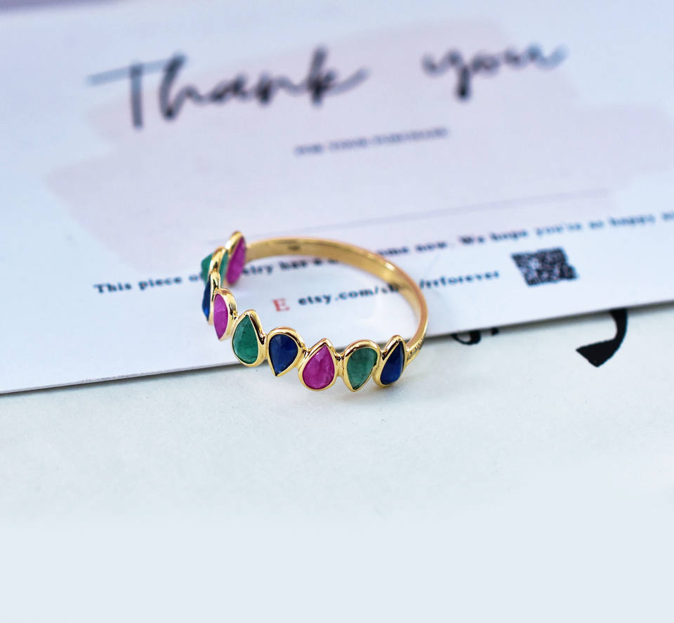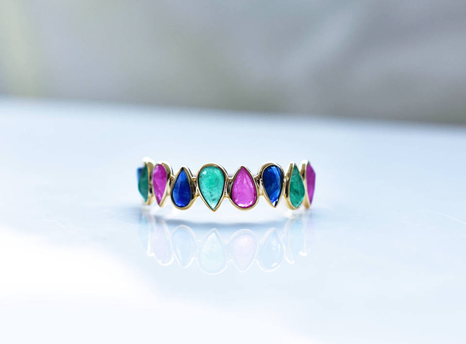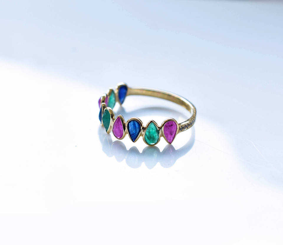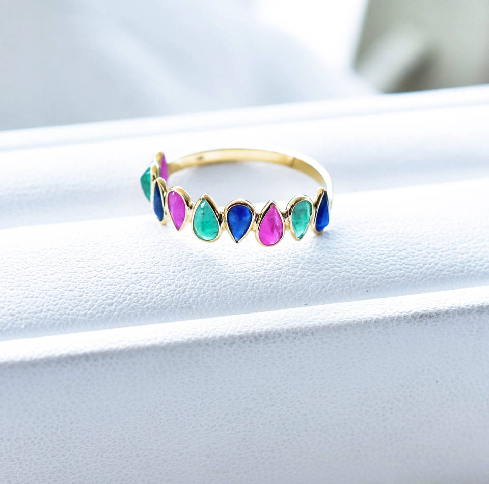 แหวนหยดน้ำทับทิม ไพลิน และมรกตธรรมชาติ